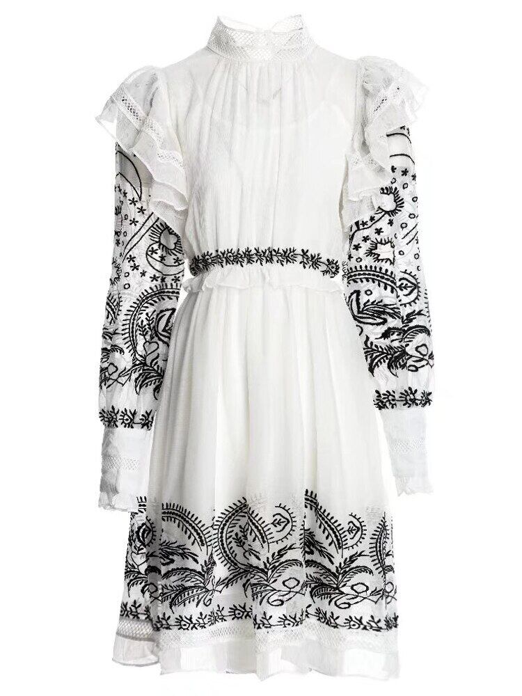 女性の春夏ストリート パーティー長袖刺繍ドレス ロング レッド スプリング 春物 サマー 夏物 pri12349656393