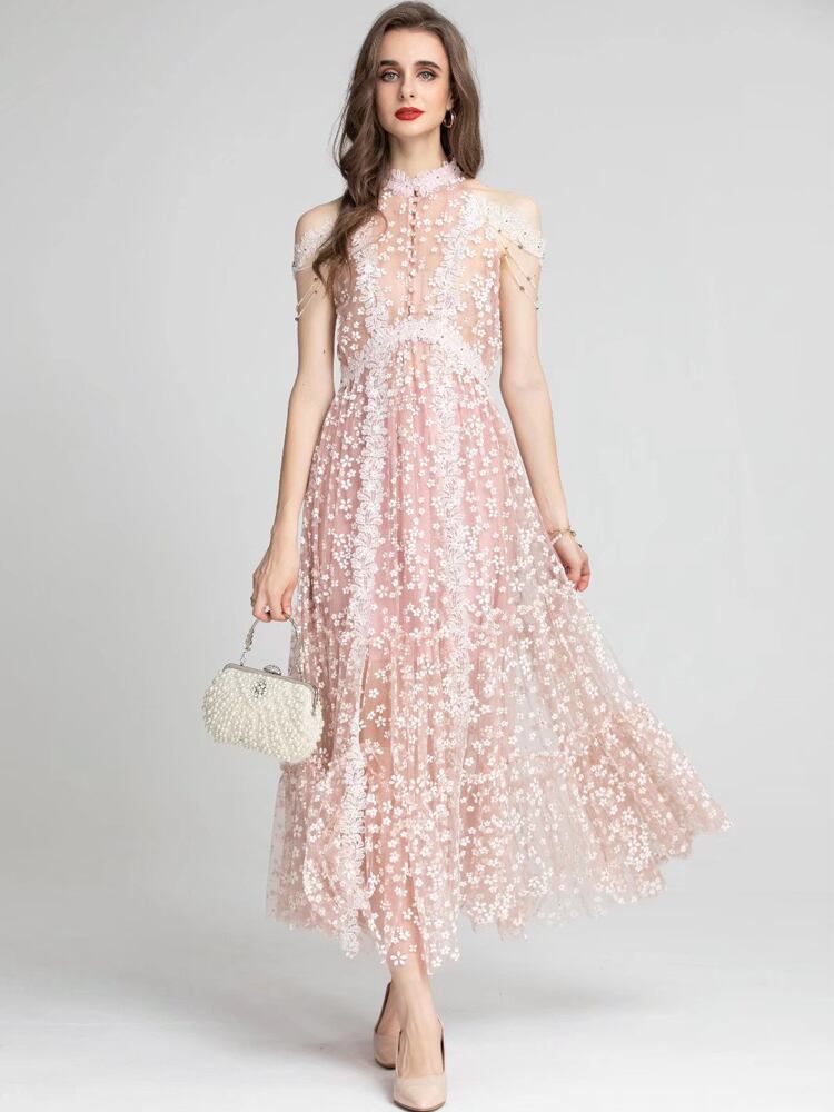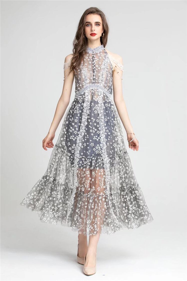 夏の女性のストリート シックなセクシーな Tel パーティー プリント メッシュ ロング ドレス サマー 夏物 pri64544830489