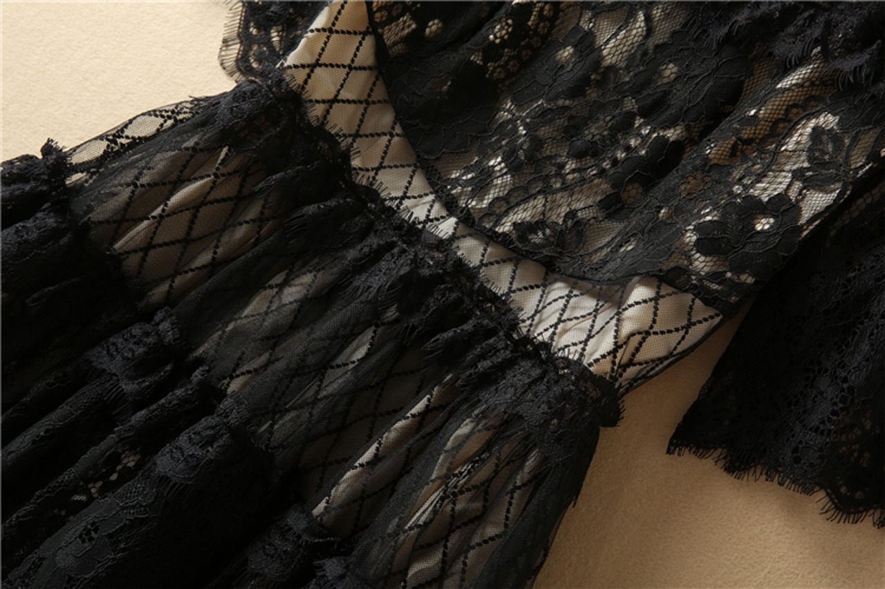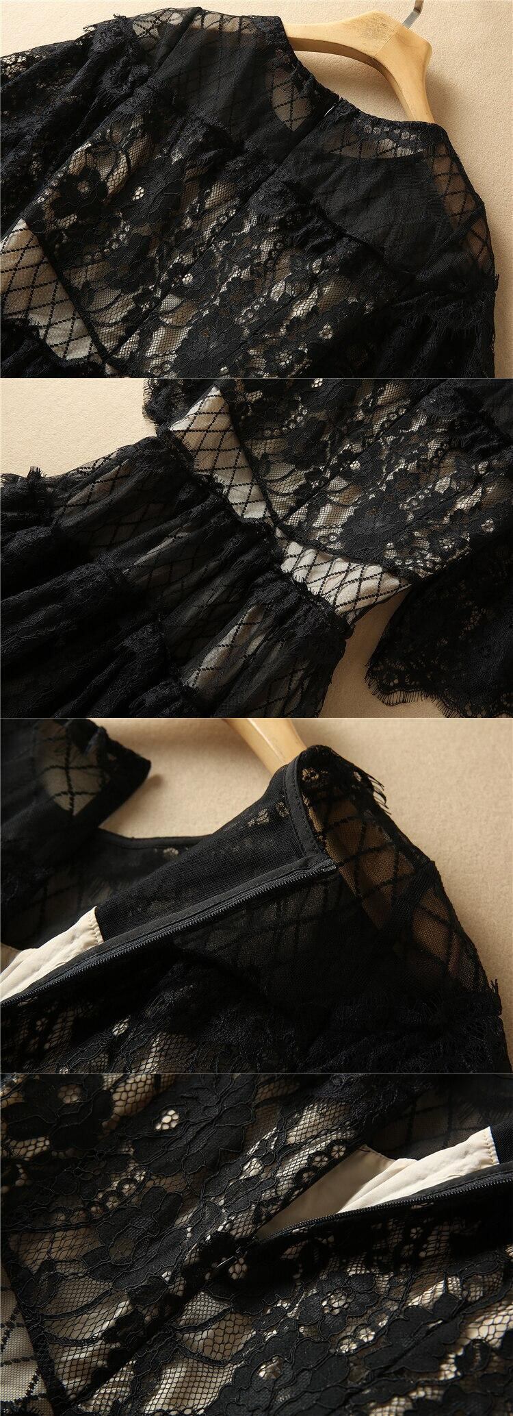 2022 春夏レディースレトロパーティー半袖ブラックレースミディドレス ショート ハーフスリーブ スプリング 春物 サマー 夏物 pri23499591209