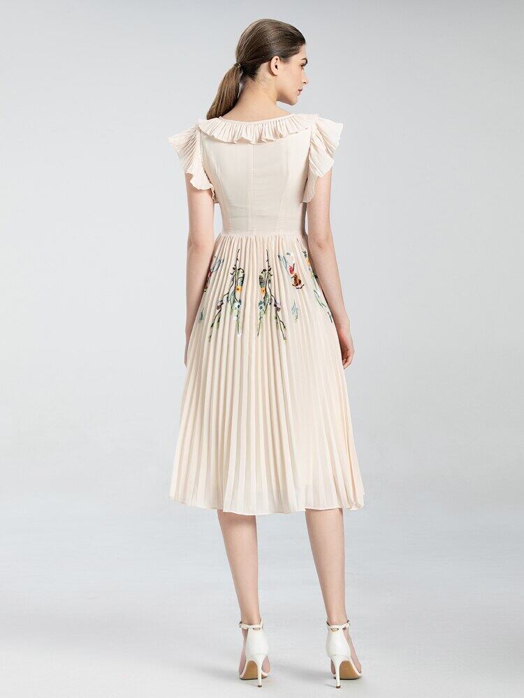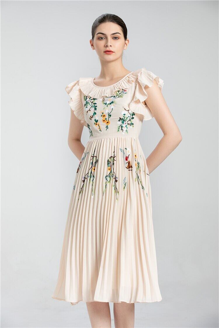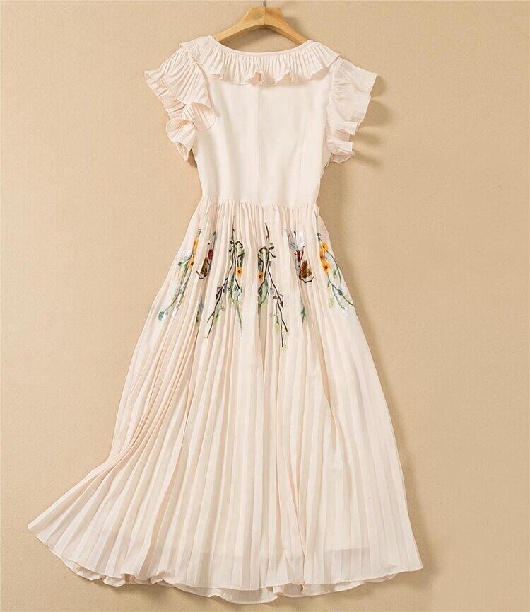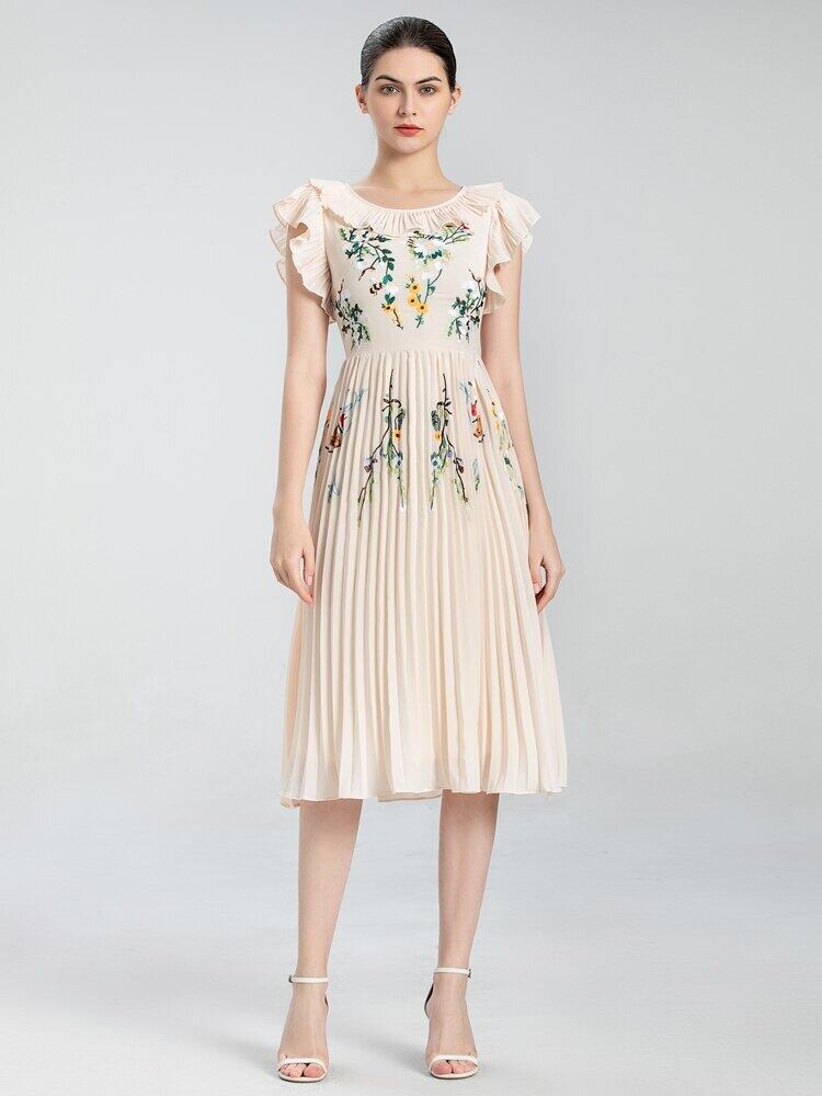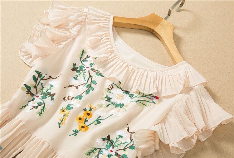 女性の夏の豪華なフリル花刺繍ストリート バケーション パーティー ドレス ラッフル サマー 夏物 フラワーデザイン pri50921249828