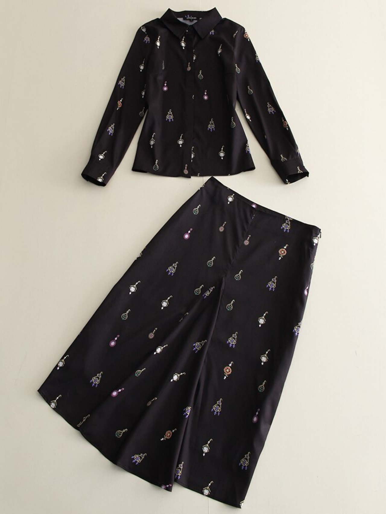 春秋の女性のセット シャツ トップス スカート パーティー オフィス プリント スーツ スプリング 春物 オータム 秋物 会社 学校 通勤や通学にも pri83944946845