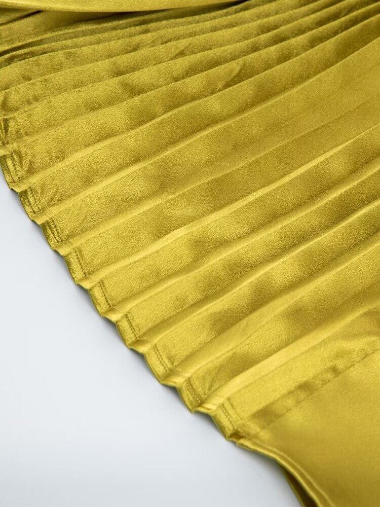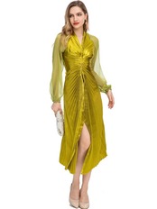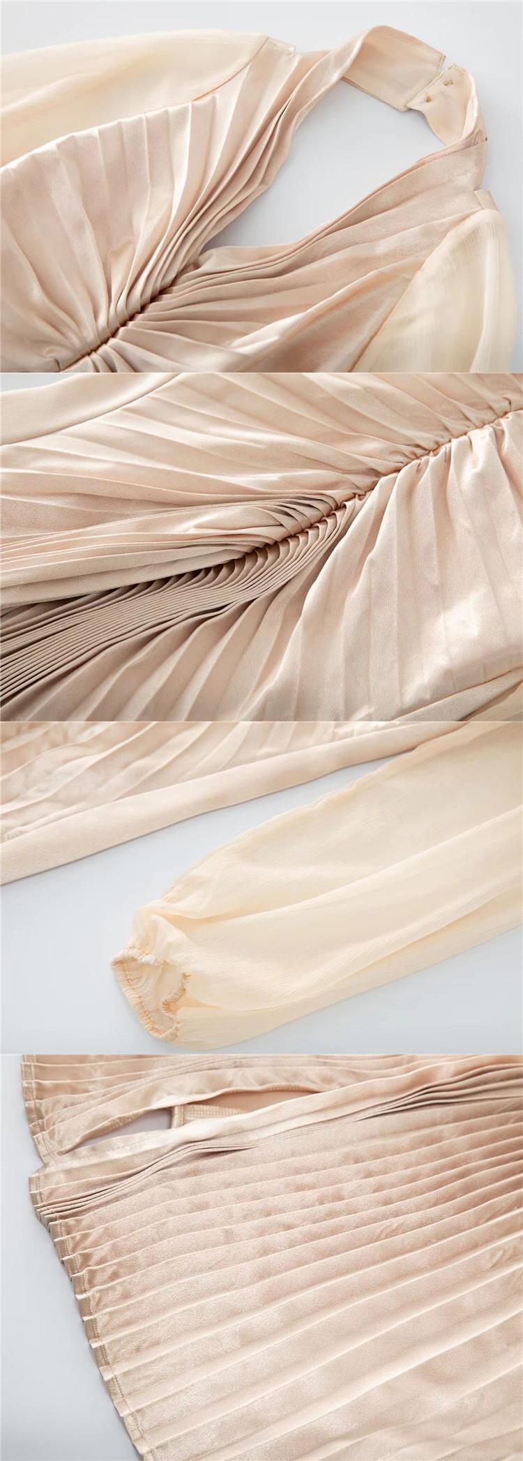 春秋の女性ストリート V ネック セクシーなパーティー プリーツ ミディ ドレス有名人 スプリング 春物 オータム 秋物 Vネック pri58831588517
