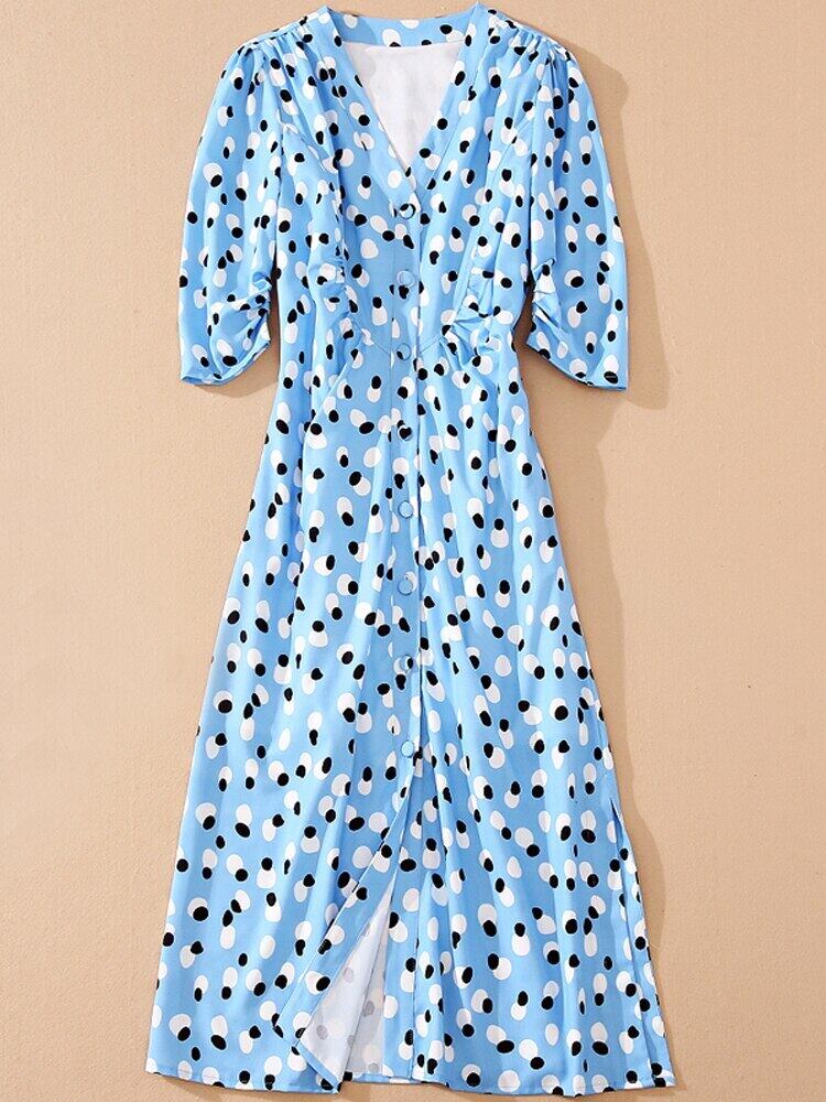 ケイトエレガンス夏の女性ミディドレスパーティーオフィスシングルブレストプリントミディドレス サマー 夏物 会社 学校 通勤や通学にも pri33890880770