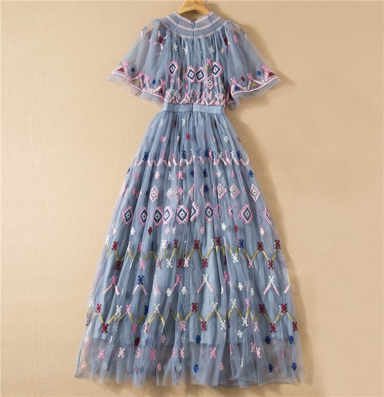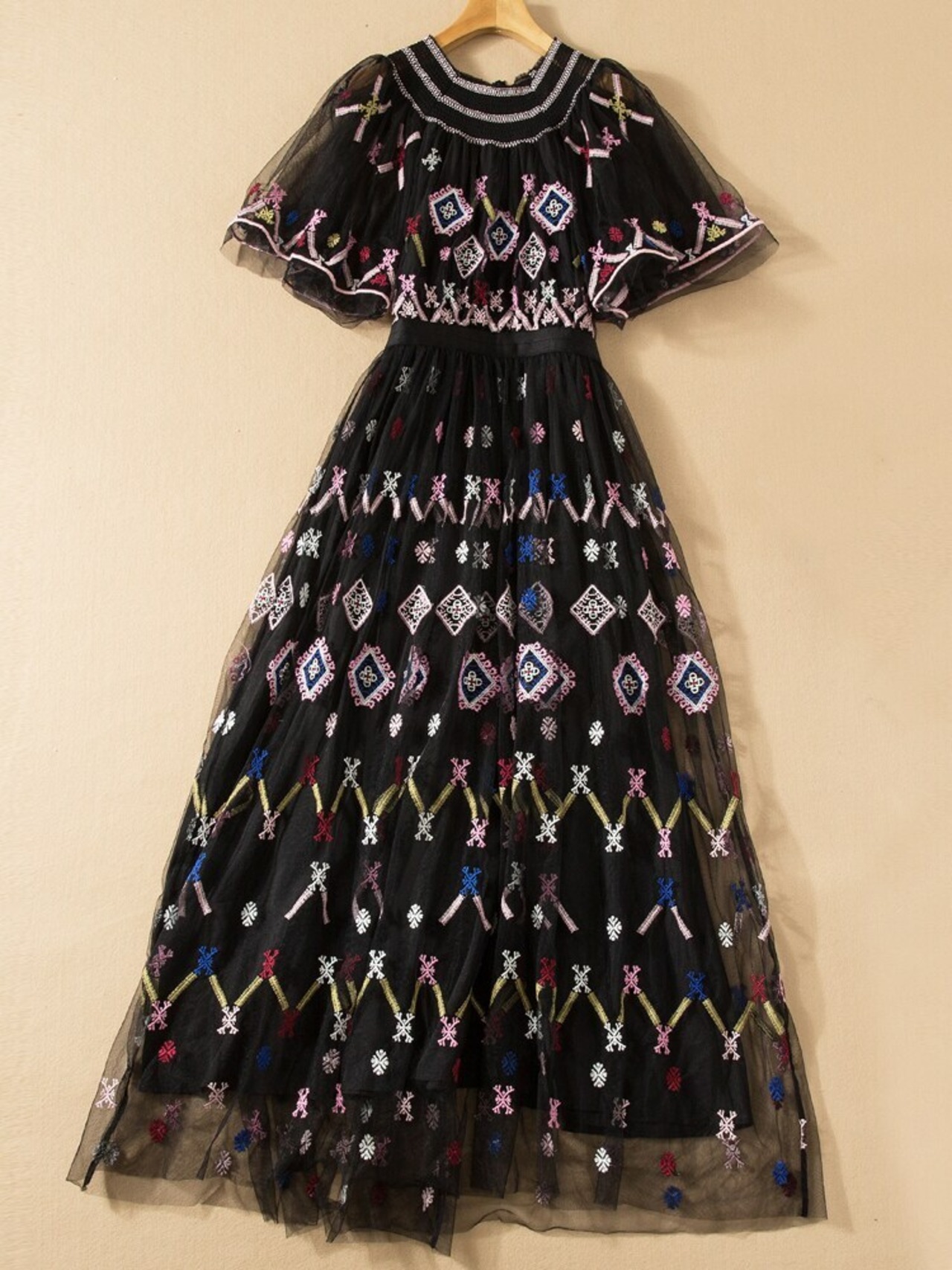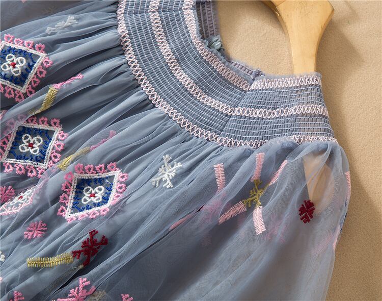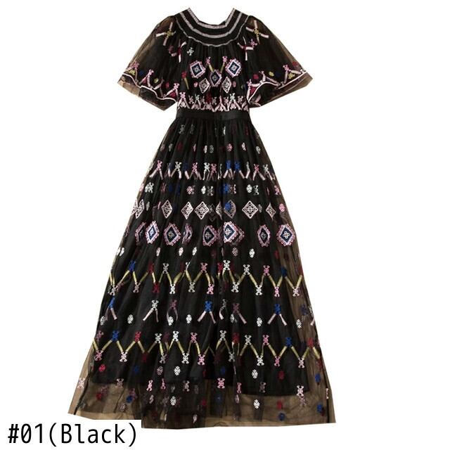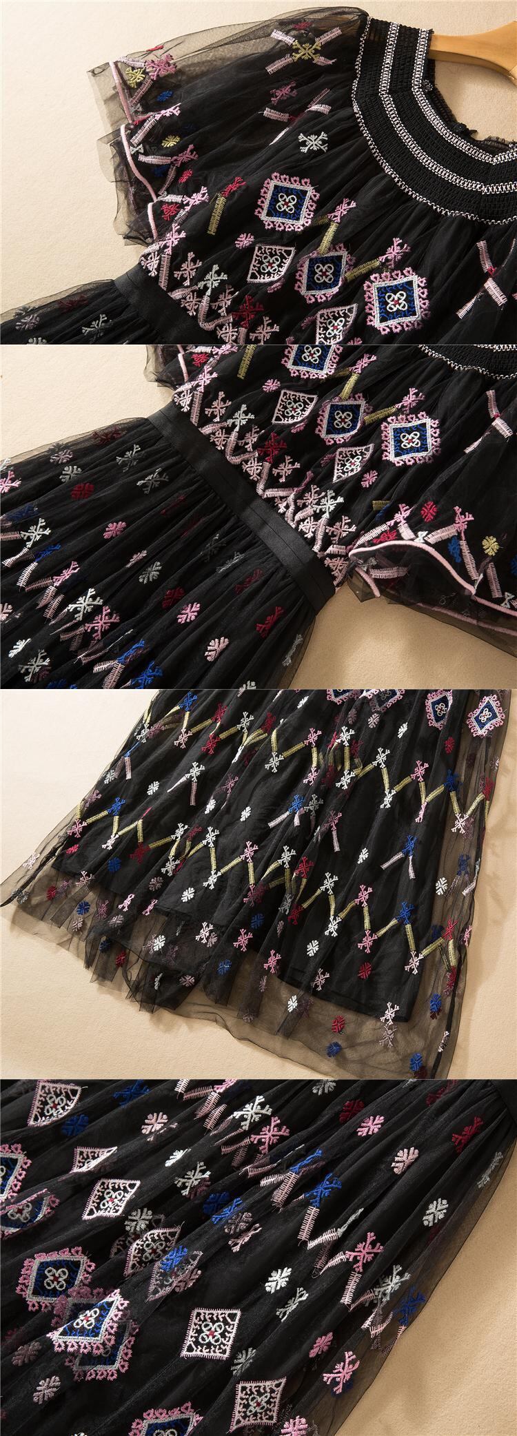 女性の夏の O ネック刺繍メッシュ ミディ ドレス オフィス パーティー ドレス サマー 夏物 Oネック 会社 学校 通勤や通学にも pri78279385414