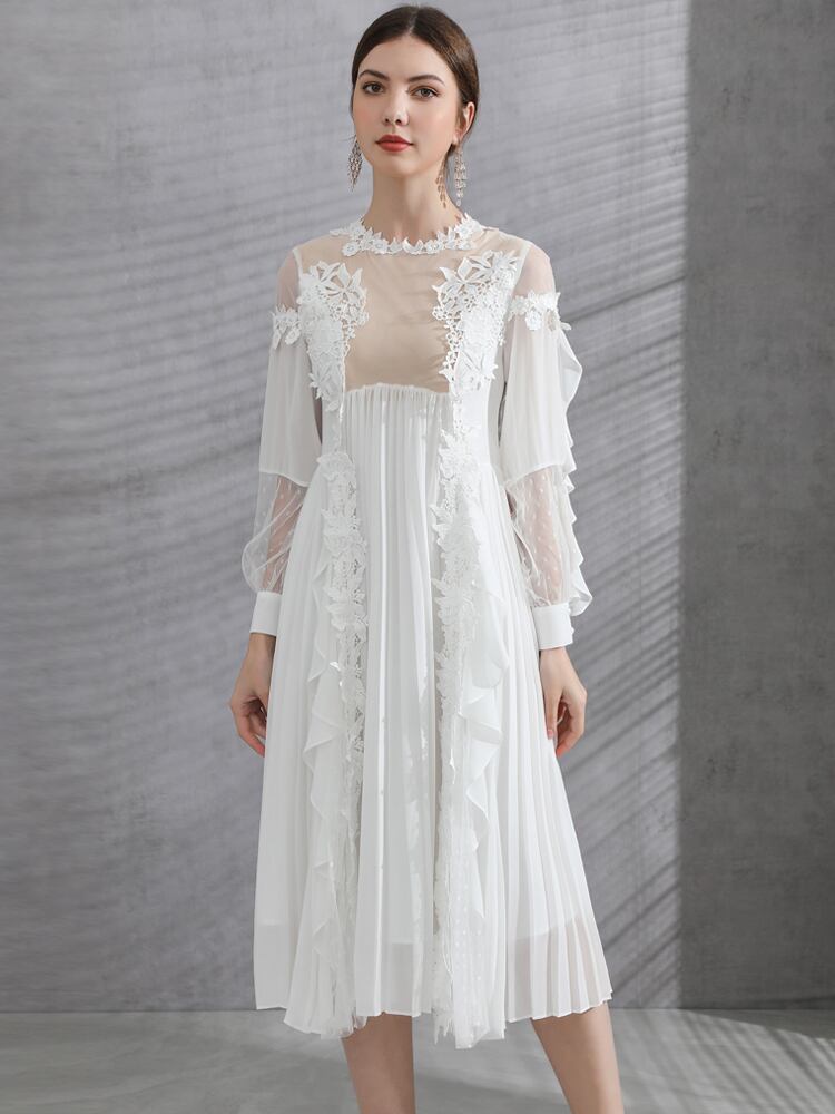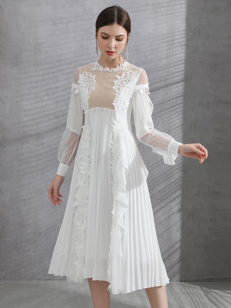 女性春レース シフォン メッシュ パッチワーク ホワイト ミニ ドレス オフィス パーティー ドレス スプリング 春物 会社 学校 通勤や通学にも pri61928437681