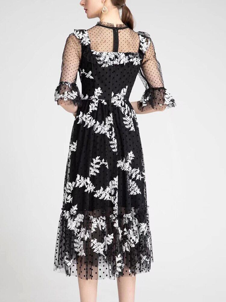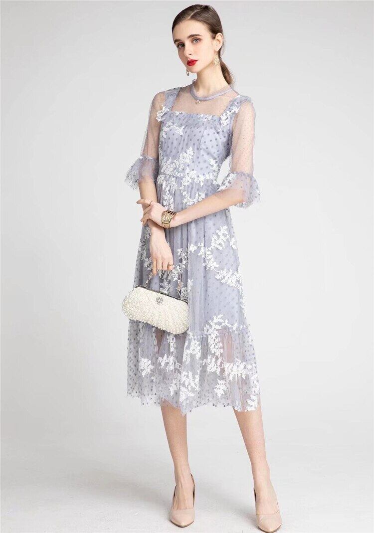 女性 2022 春夏刺繍メッシュ ミディ ドレス セクシーなパーティー ドレス レッド スプリング 春物 サマー 夏物 pri61660000616