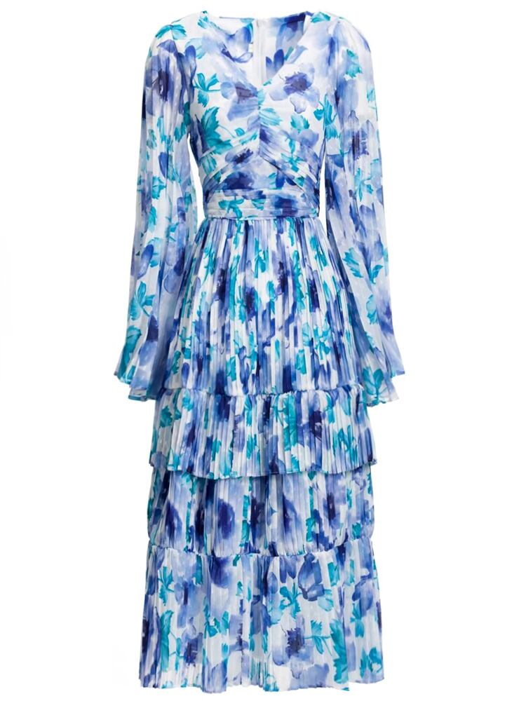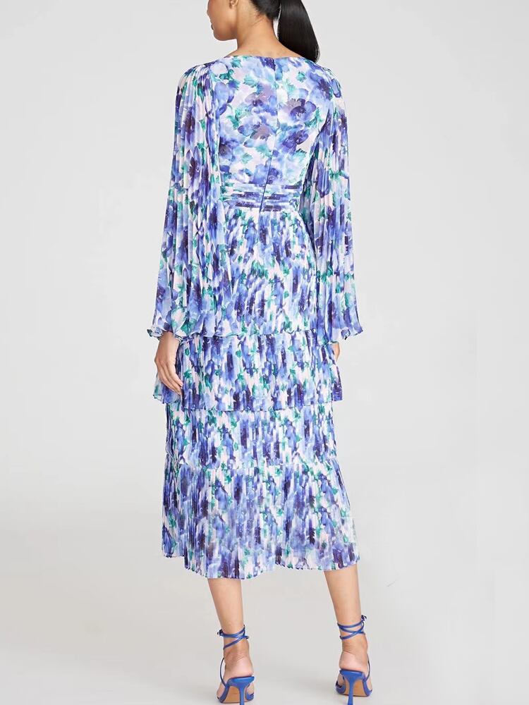 春秋の女性のボヘミアン フリル長袖プリント パーティー シックなミディ ドレス ロング ラッフル スプリング 春物 オータム 秋物 pri30718130166