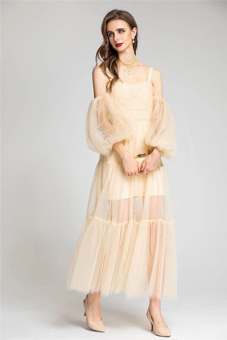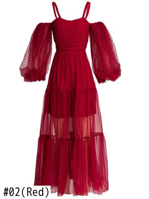 春夏レディースストリートドットプリントメッシュセクシーパーティーロングドレス スプリング 春物 サマー 夏物 pri91970670260