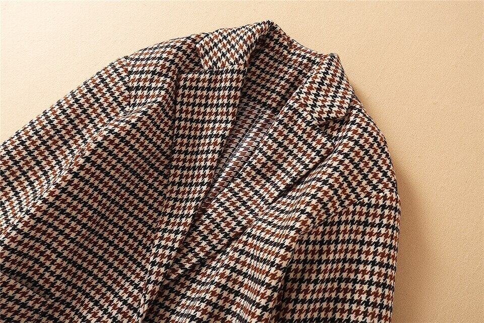 秋冬 レディース パーティー シック チェック柄 長袖 ジャケット ウインドブレーカー ロング ウィンター 冬物 pri82535860028
