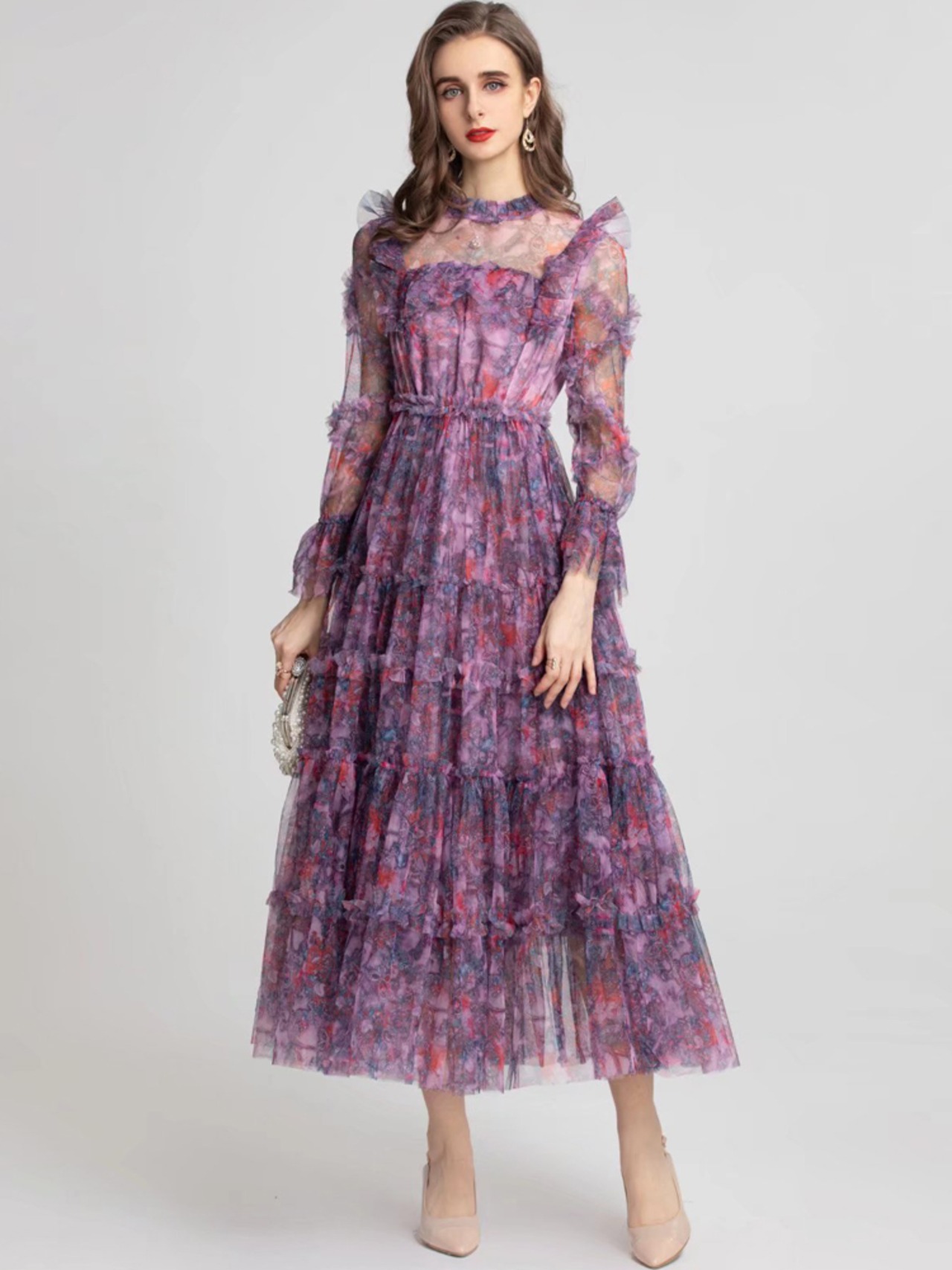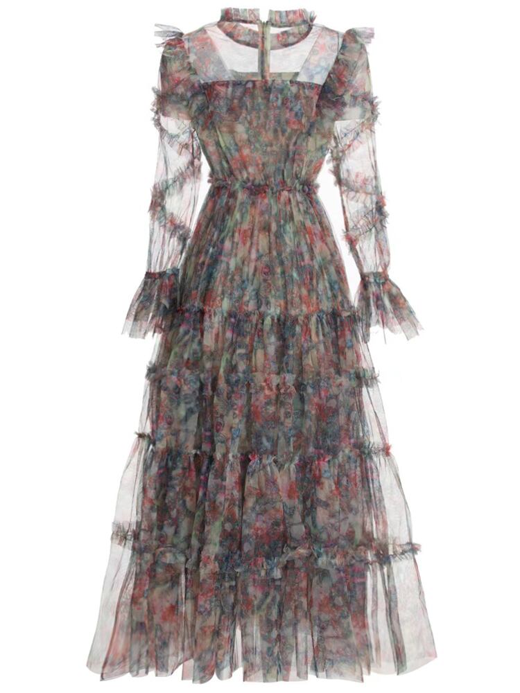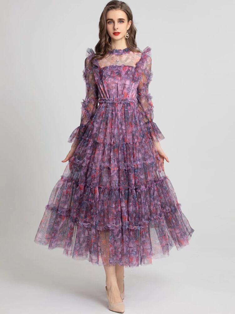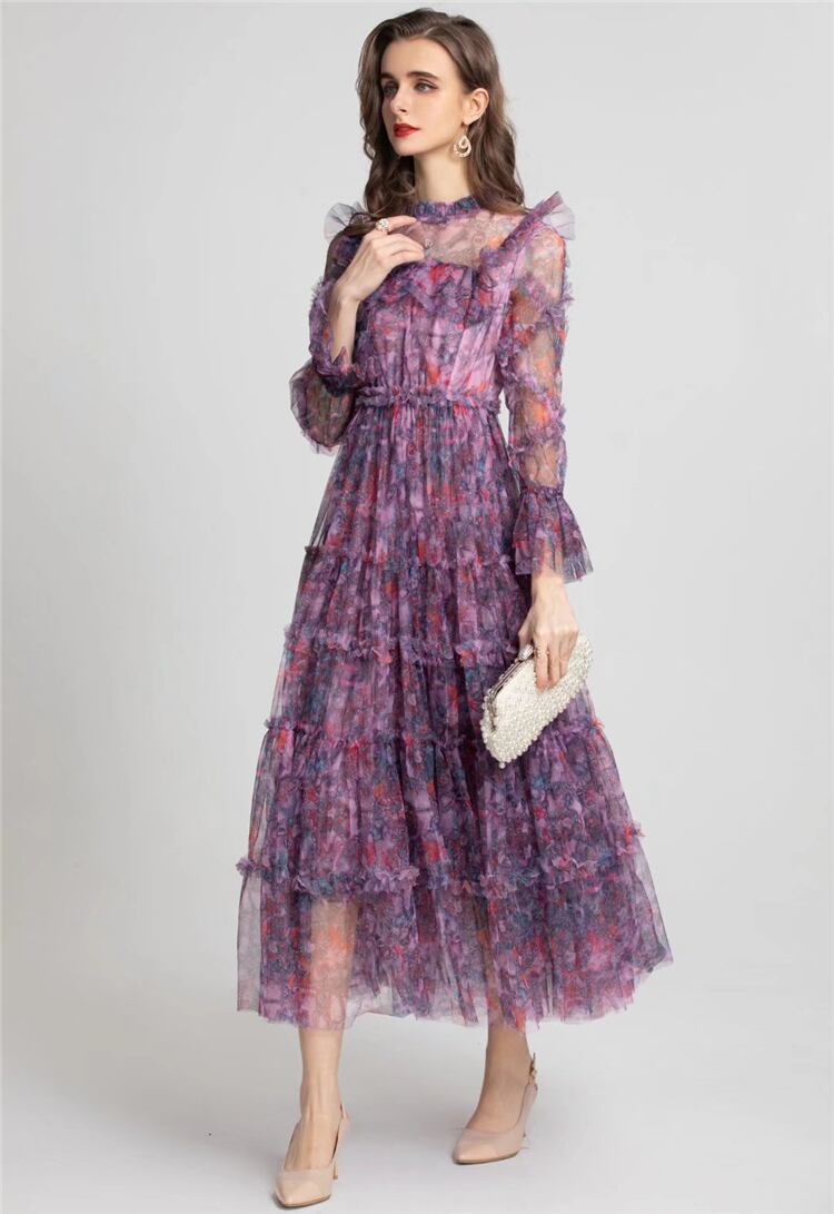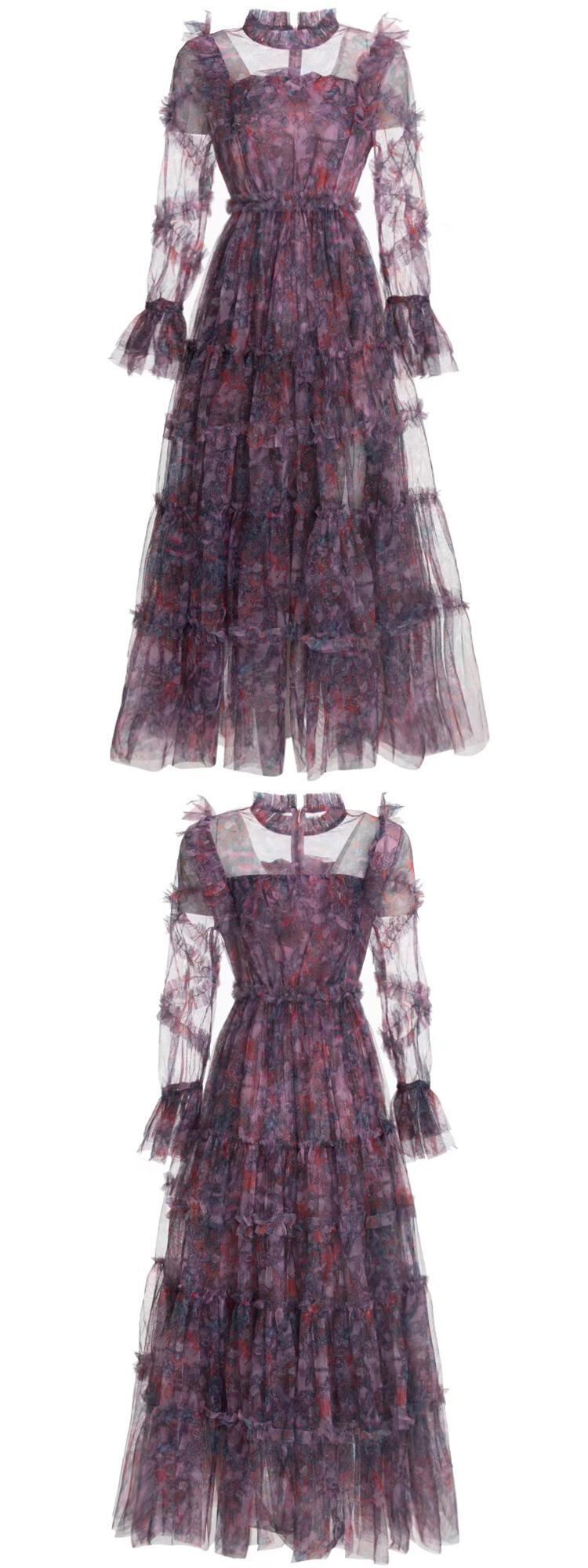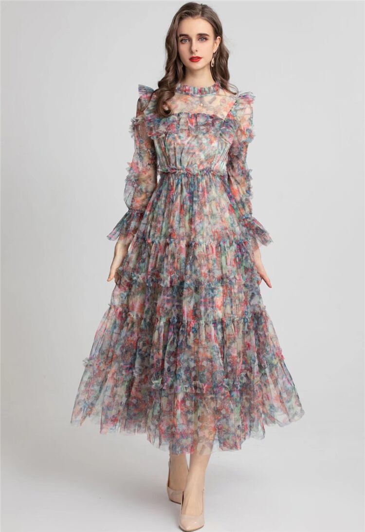 女性の春夏ボヘミアン プリント パーティー長袖プリント メッシュ ドレス ロング スプリング 春物 サマー 夏物 pri1153011108