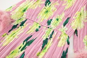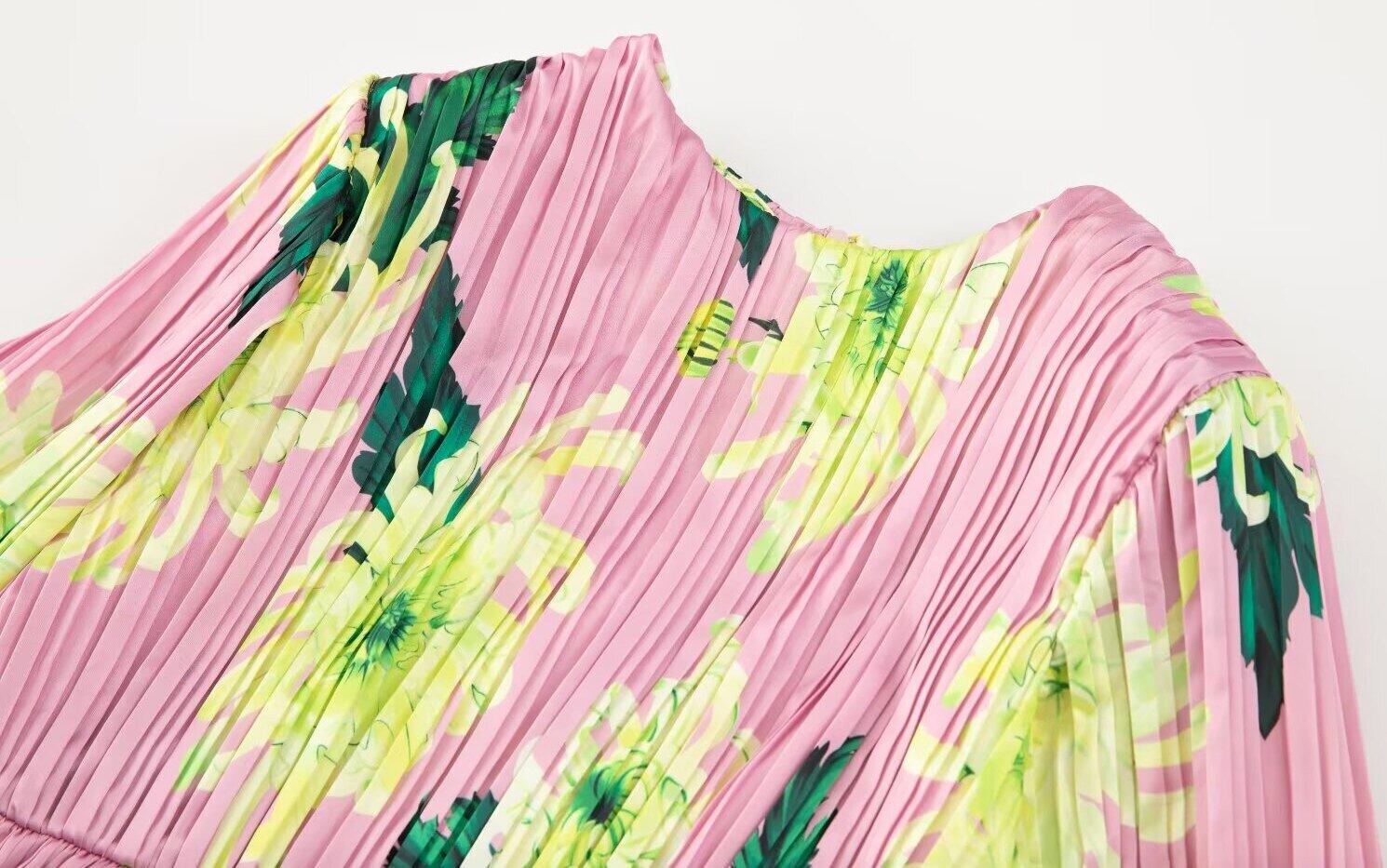 秋の女性のプリント羽袖プリーツ ミディ ドレス有名人パーティー オータム 秋物 pri26740339555