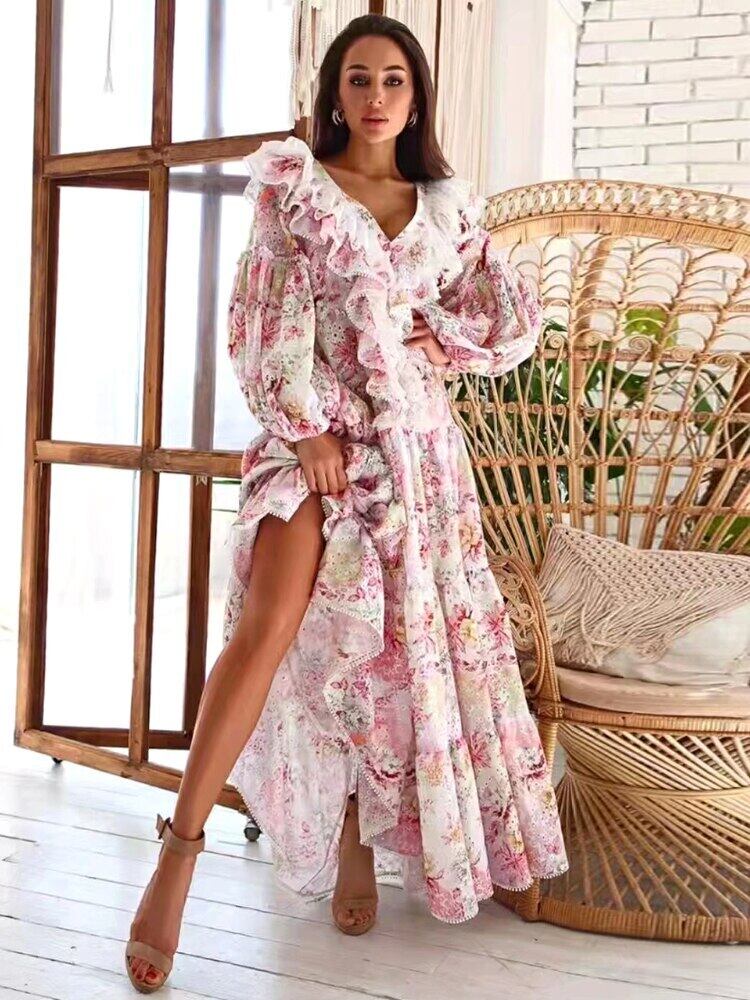 女性の春秋のボヘミアン レース刺繍プリント セクシーなパーティー ドレス レッド スプリング 春物 オータム 秋物 pri85761440254