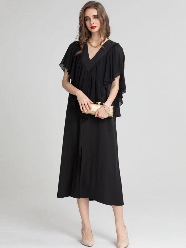 夏の女性のストリート シックなセレブリティ パーティー V ネック ルーズ ロング ドレス サマー 夏物 Vネック pri83142955769
