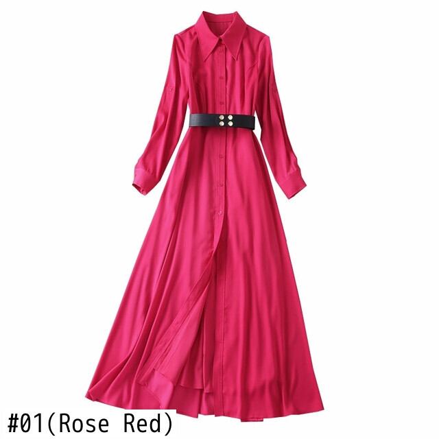 ランウェイ春秋の女性のロングドレスシングルブレストシャツベルトパーティードレス スプリング 春物 オータム 秋物 ハーネス pri70009255856