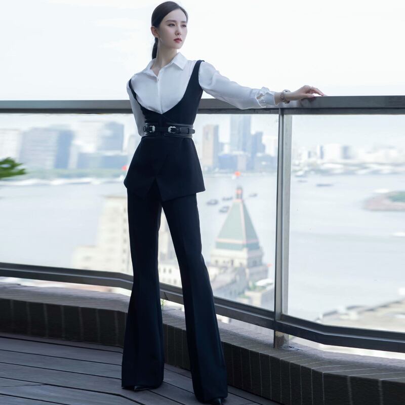 滑走路春秋の女性 3 点セット シャツ トップス黒ズボン パーティー スーツ ブラック スプリング 春物 オータム 秋物 pri34071486752