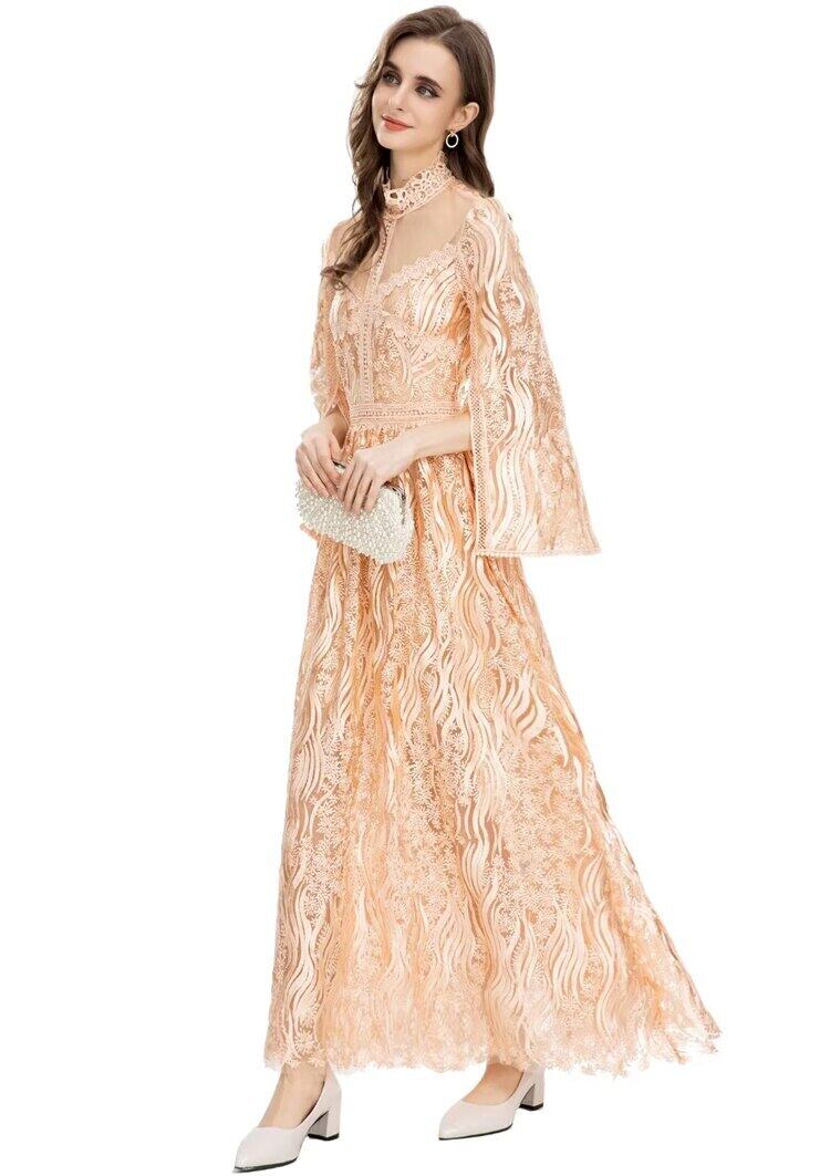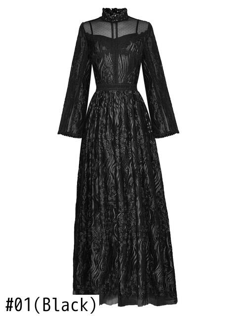 レディース 秋 パーティー フレアスリーブ 華やか 刺繍 シック ロングドレス オータム 秋物 pri40791685194