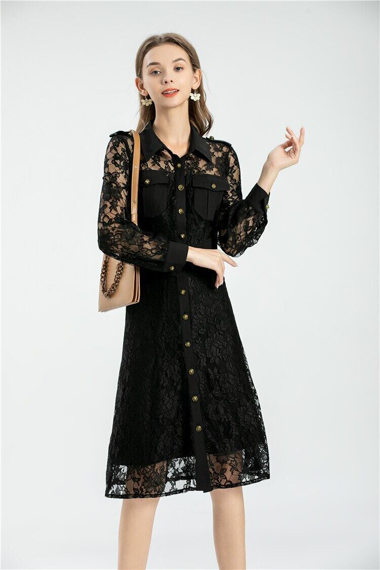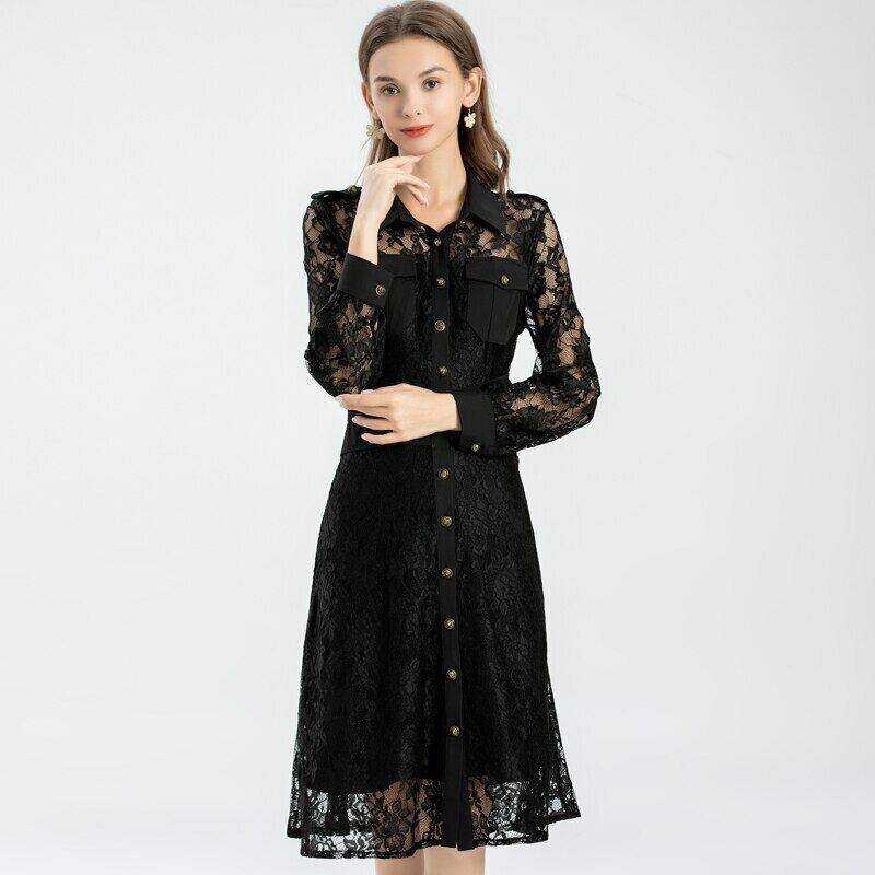 春夏レディースストリートパッチワークパーティーレースロングスリーブドレス 長袖 スプリング 春物 サマー 夏物 pri28490080712
