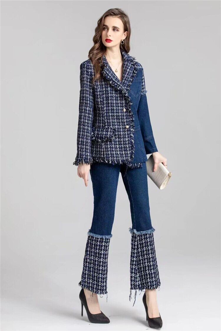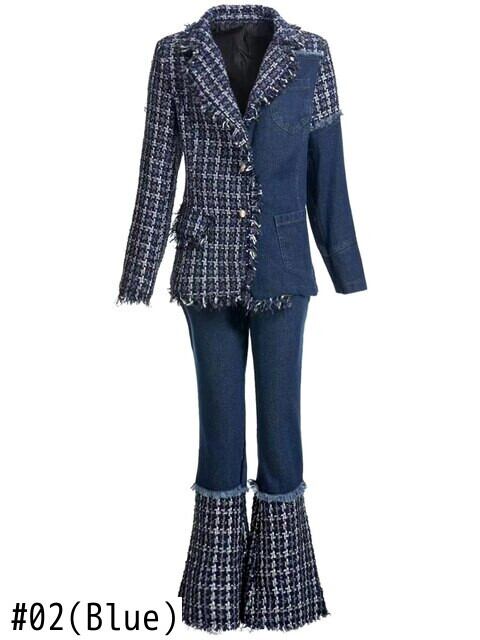 秋の女性のセット ツイード スーツ トップス パッチワーク パンツ パーティー スーツ オータム 秋物 pri69840127502