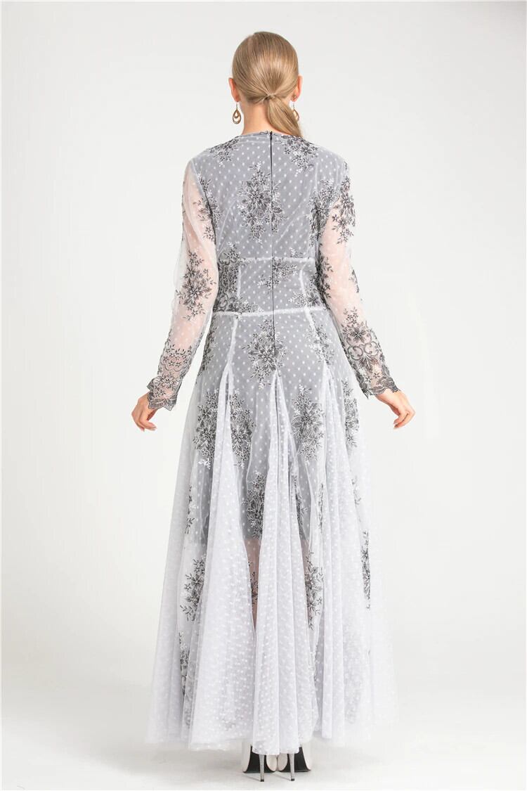 女性の春秋のセクシーなゴージャスなパーティー刺繍メッシュ ロング ドレス レッド スプリング 春物 オータム 秋物 pri67245486989