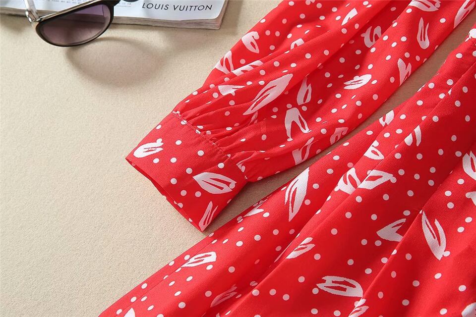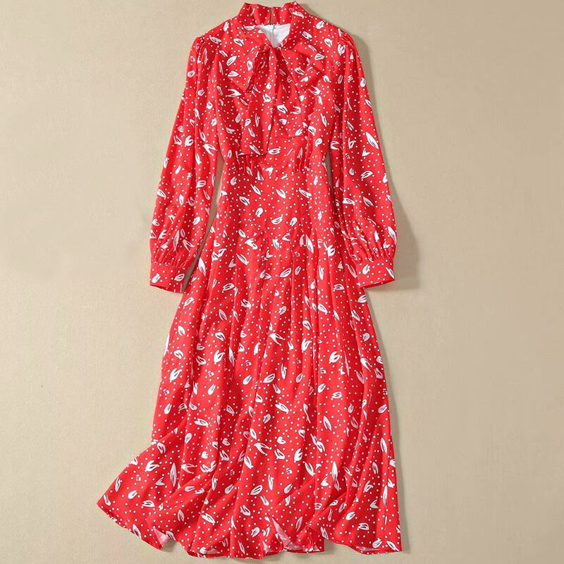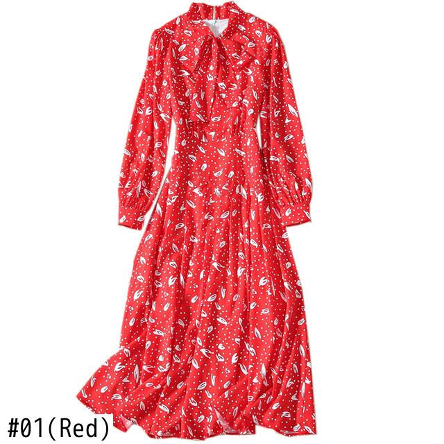 Kate Middleton 春秋の女性のパーティー シックな紳士レッド プリント ミディ ドレス スプリング 春物 オータム 秋物 pri49189192167