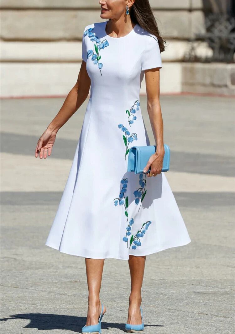 女性の夏のストリートセレブリティパーティー半袖刺繍ミディドレス ショート ハーフスリーブ サマー 夏物 pri87731893571