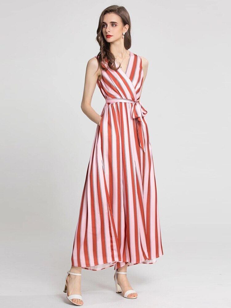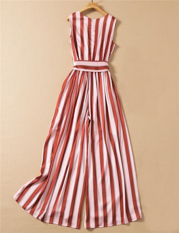 2022 夏女性のロンパースオフィスセクシーな V ネックストライプワイドレッグパンツジャンプスーツ サマー 夏物 Vネック ワイドパンツ 会社 学校 通勤や通学にも pri71985329904