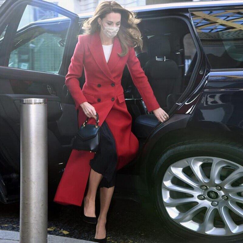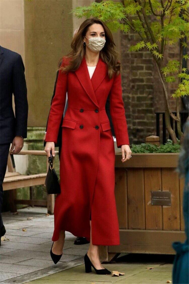 ケイト 秋冬 レディース ウインドブレーカー 長袖 パーティーボタン 赤 ロングコート レッド オータム 秋物 ウィンター 冬物 pri14104430314