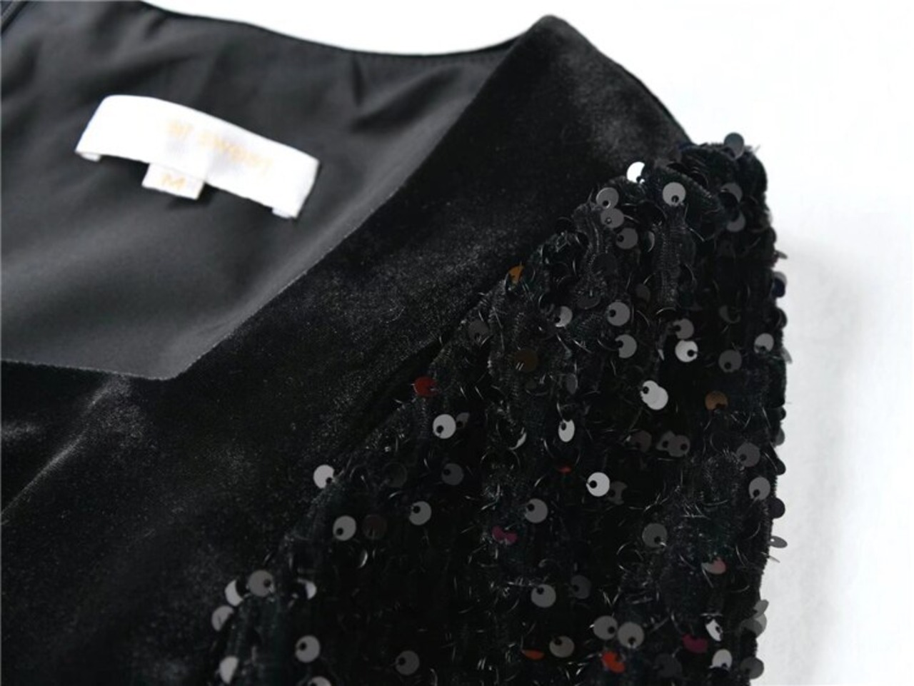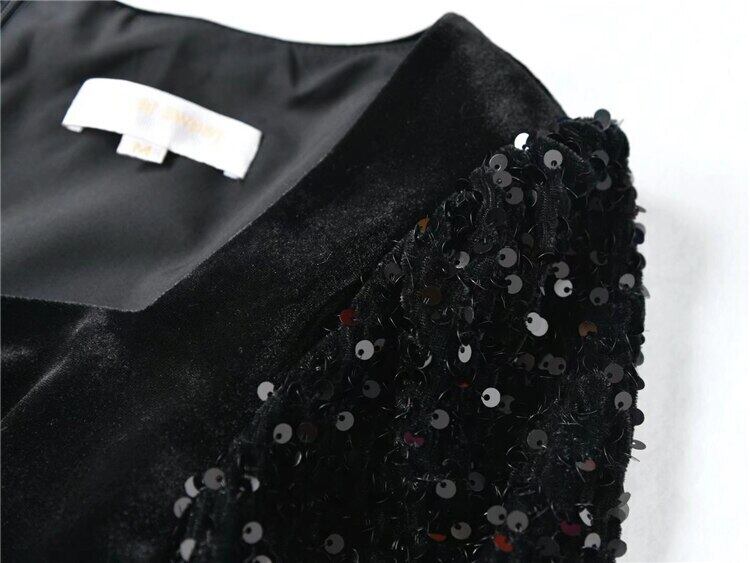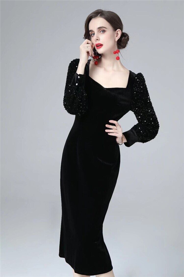 2022 春秋の女性のパーティーセクシーなシックなスパンコール黒ミディペンシルドレス ブラック スプリング 春物 オータム 秋物 pri41904788924