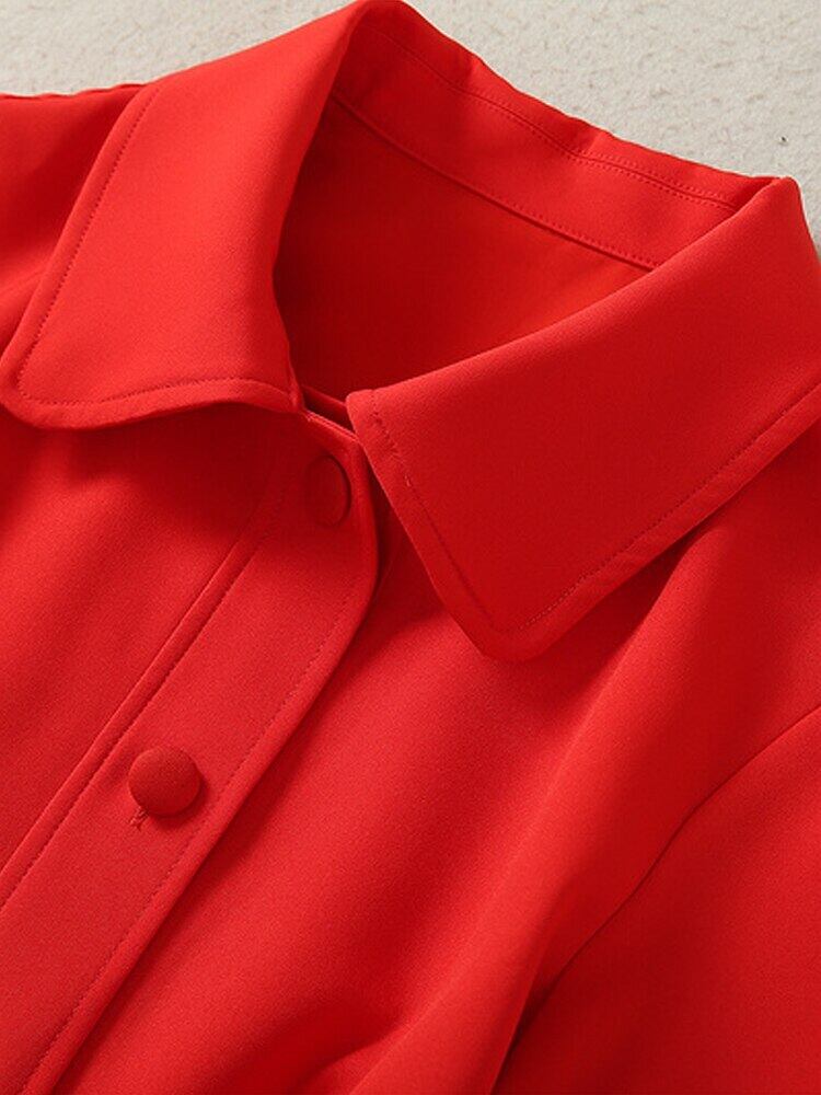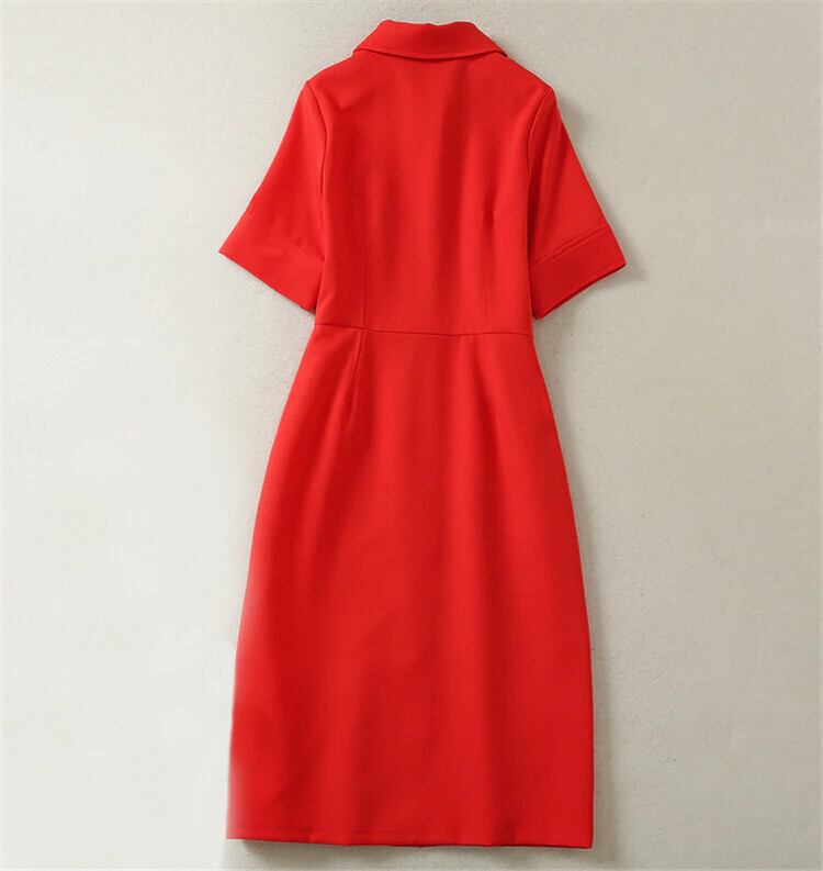ストリート レディース サマー セレブリティ パーティー オフィス ボタン レッド ドレス 夏物 会社 学校 通勤や通学にも pri22286182142