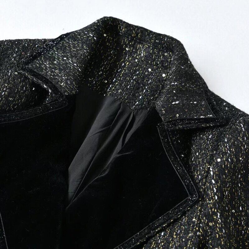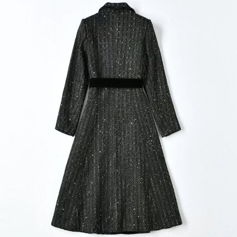 トレンチコート秋冬レディースラペルパッチワークパーティースリムブラックロングジャケット オータム 秋物 ウィンター 冬物 pri39179437459