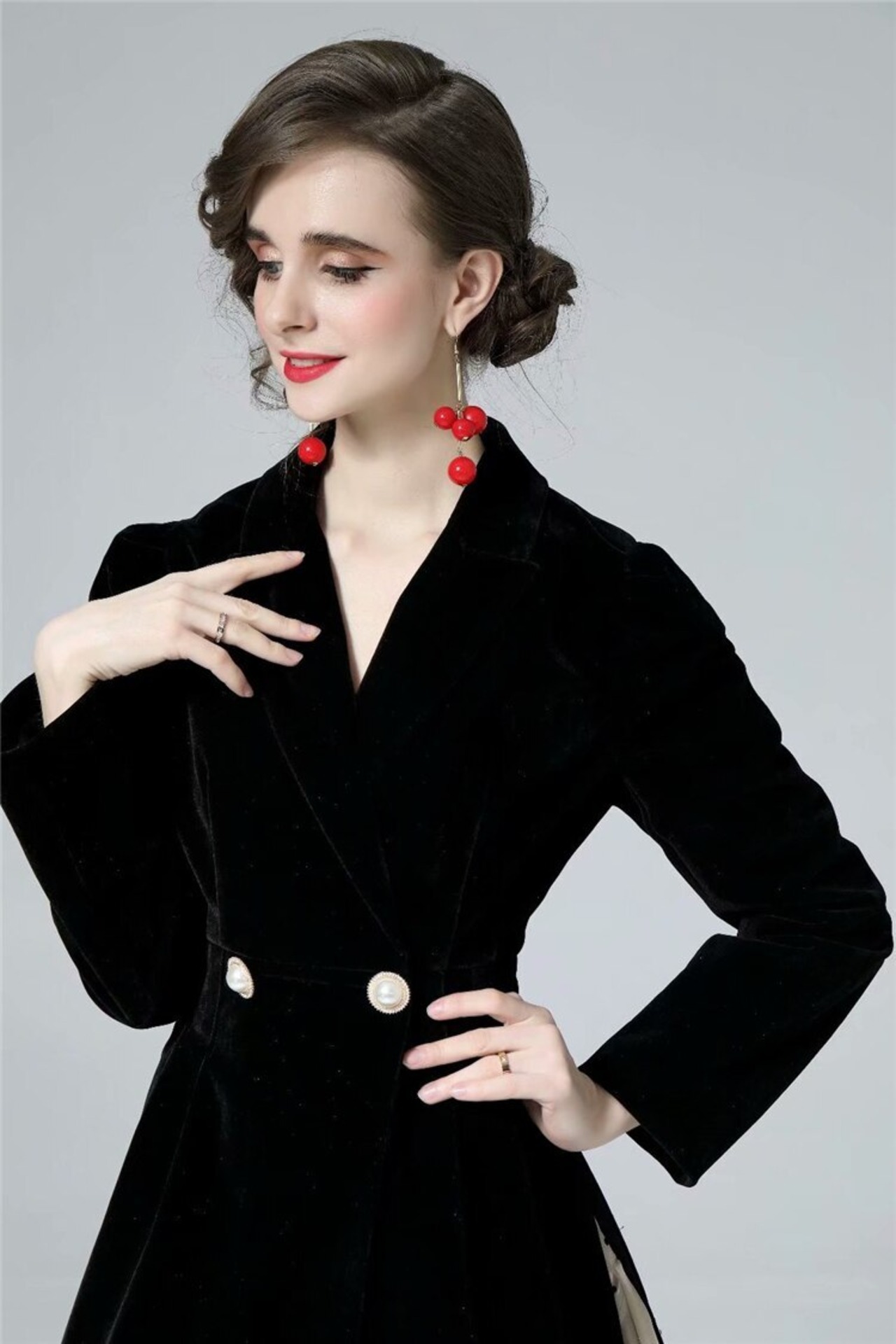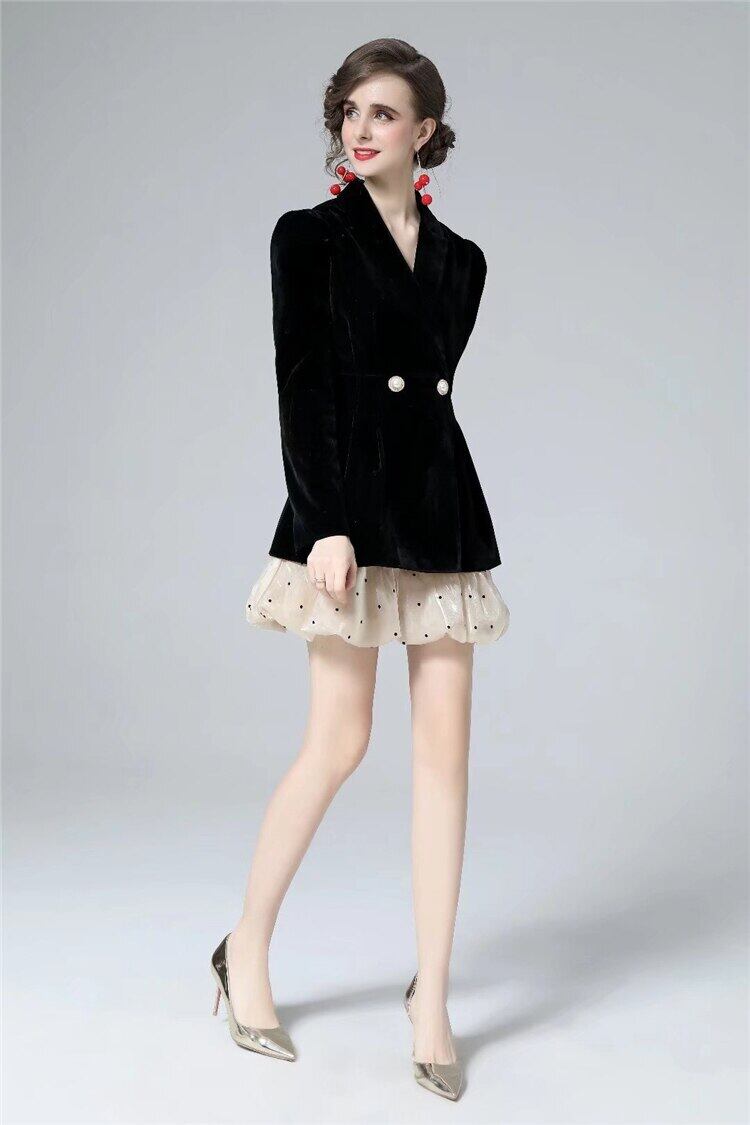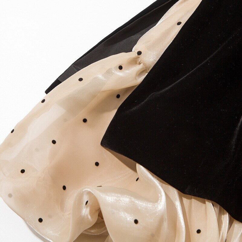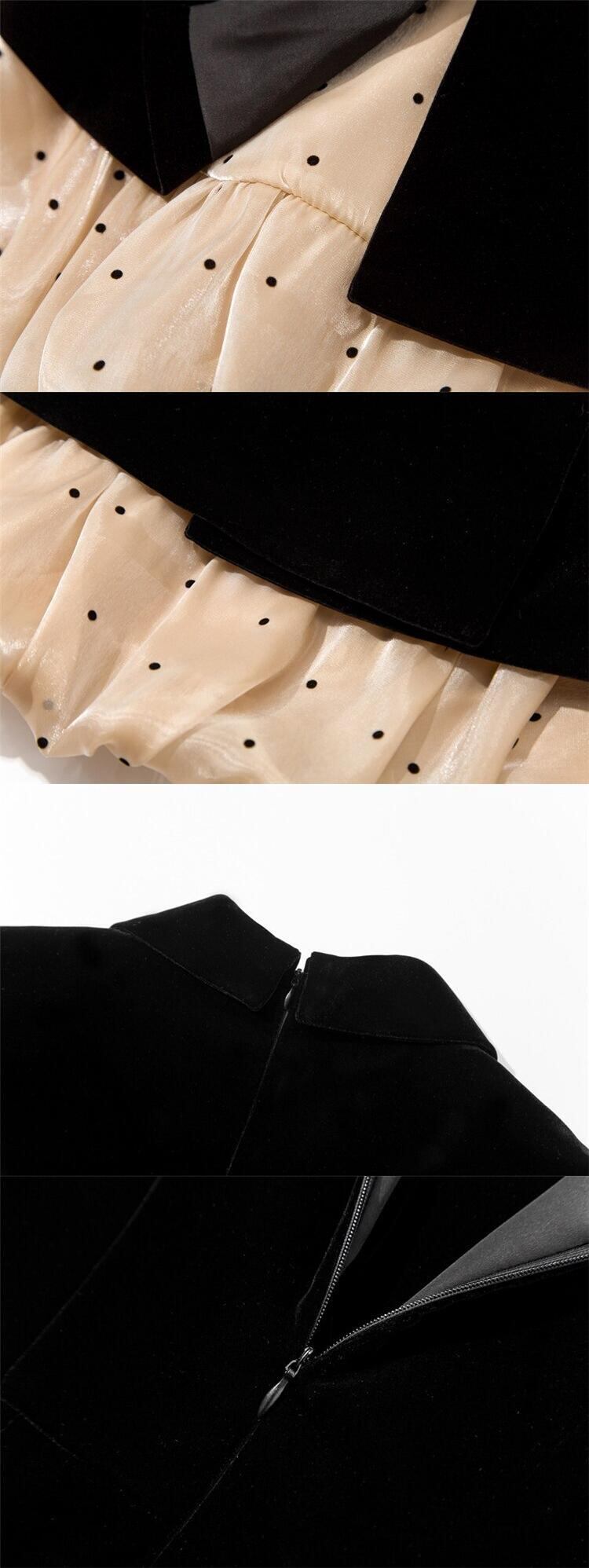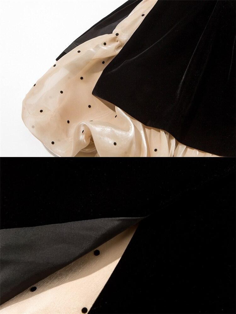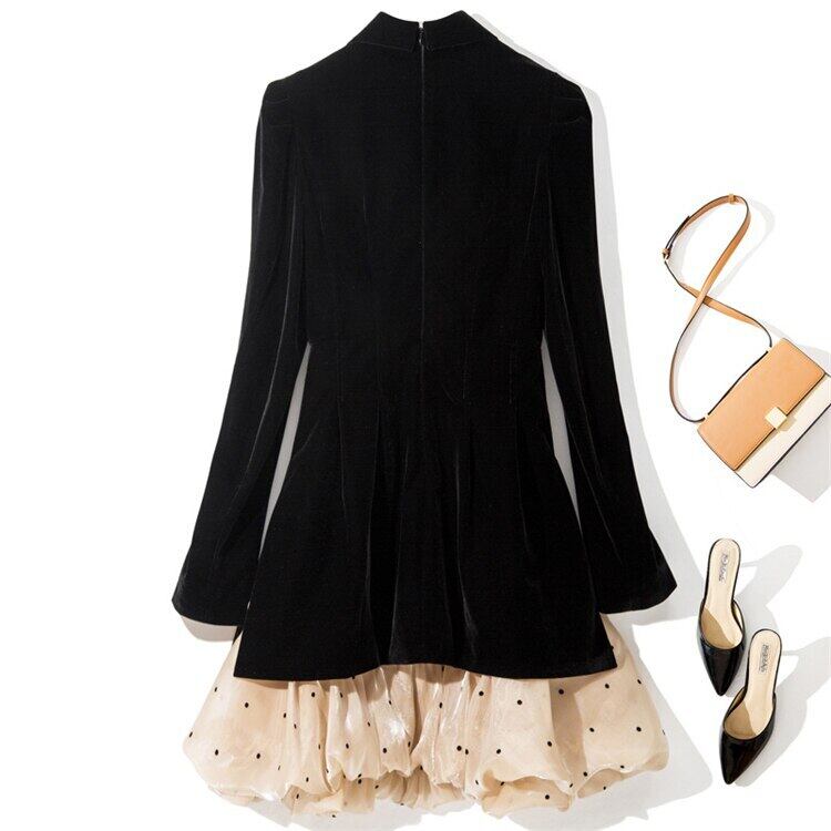 春秋の女性のミニ ドレス パーティー パッチワーク ブラック ベルベット ドレス スプリング 春物 オータム 秋物 pri32725728975