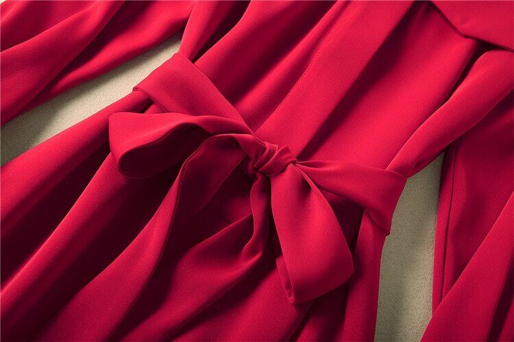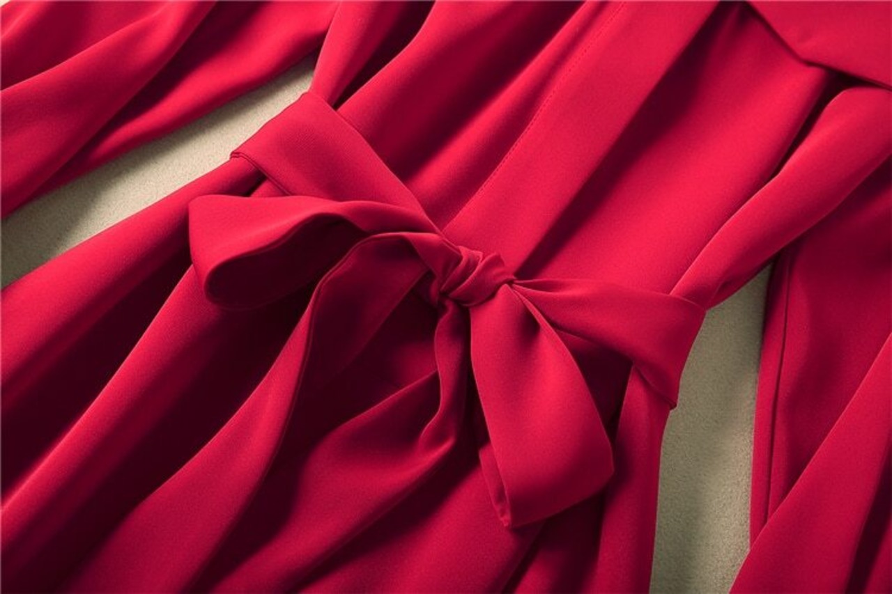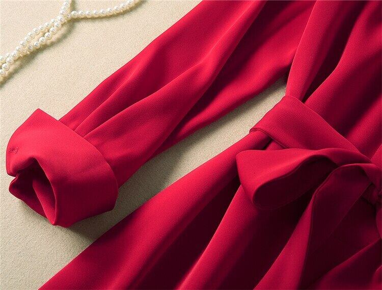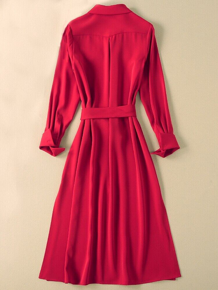 秋の女性のストリートロングスリーブレッドシャツミディドレスパーティードレス 長袖 オータム 秋物 pri91860155429