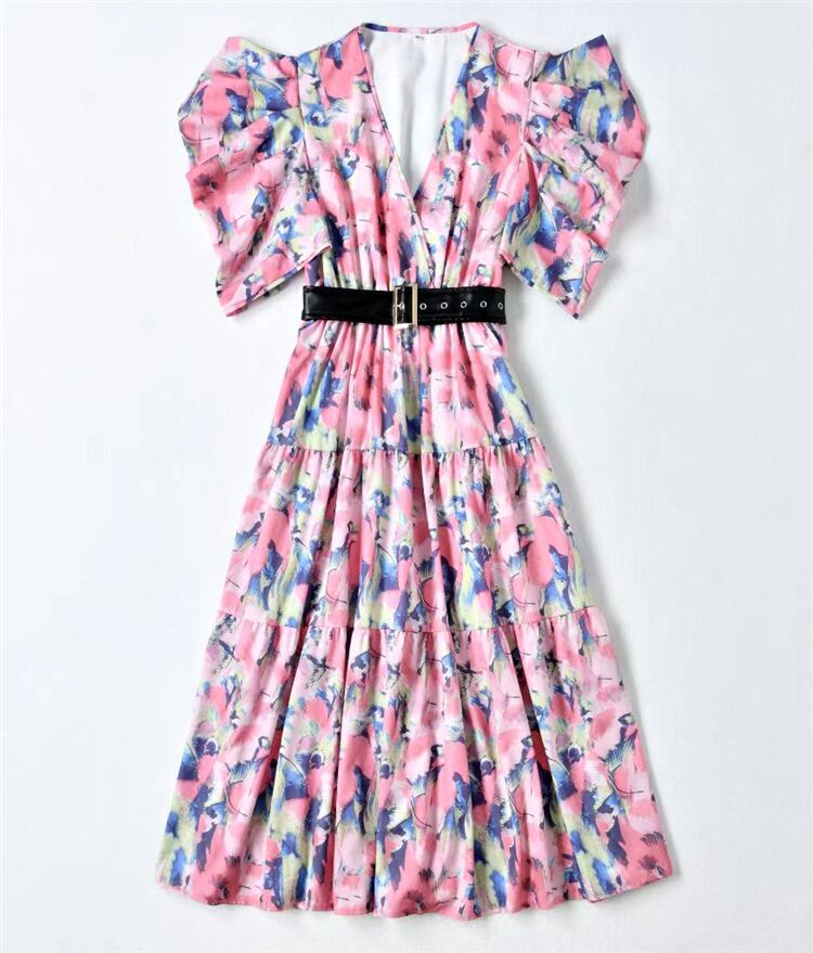 2022 春の女性のボヘミア パーティー半袖花柄ミディ ドレス ショート ハーフスリーブ スプリング 春物 pri24233071240