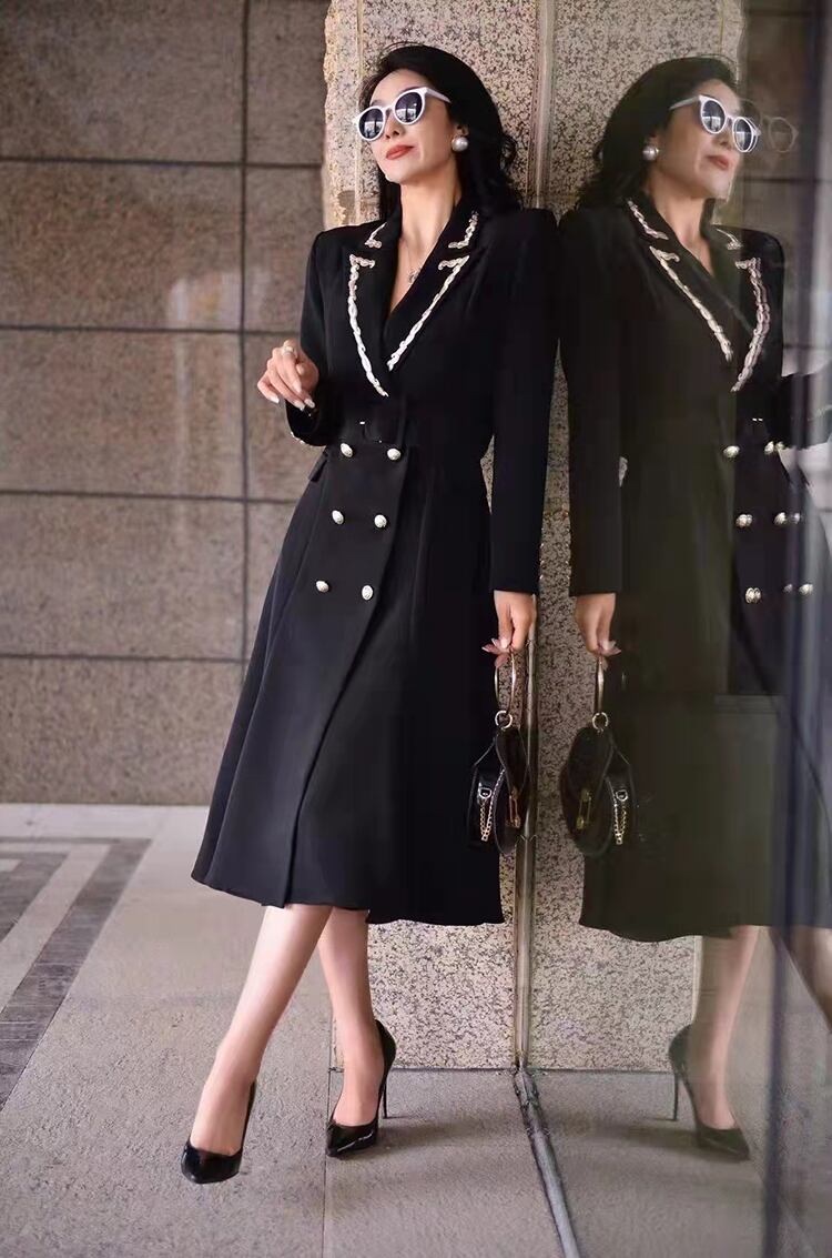 ウインドブレーカー春秋の女性オフィス パーティー スリム長袖ボタン スーツ ロング ジャケット スプリング 春物 オータム 秋物 会社 学校 通勤や通学にも pri59669438775