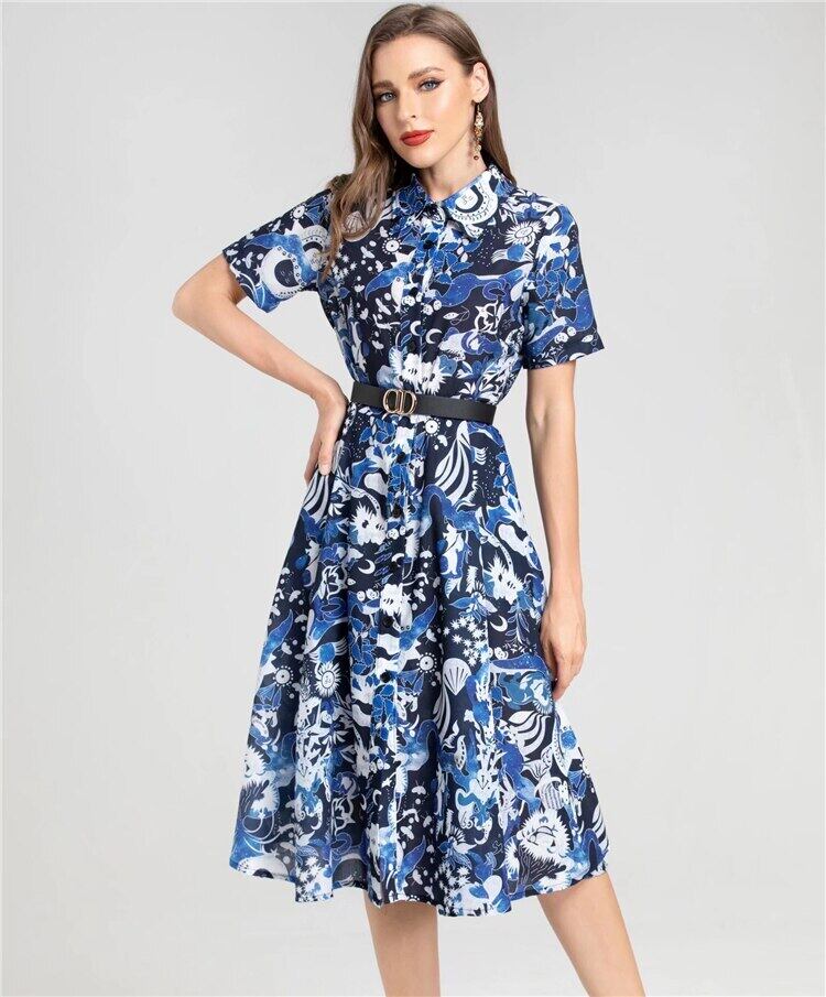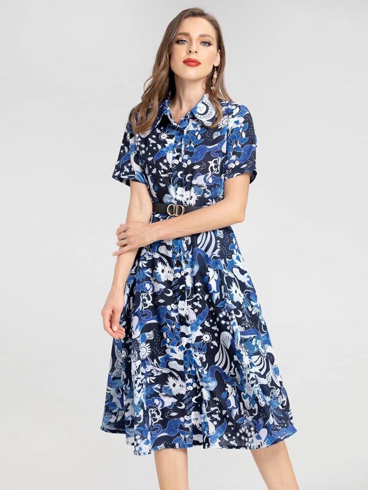 s レディース サマーラペル 半袖 プリントシャツ セレブリティ パーティードレス ショート ハーフスリーブ 夏物 pri18181459126