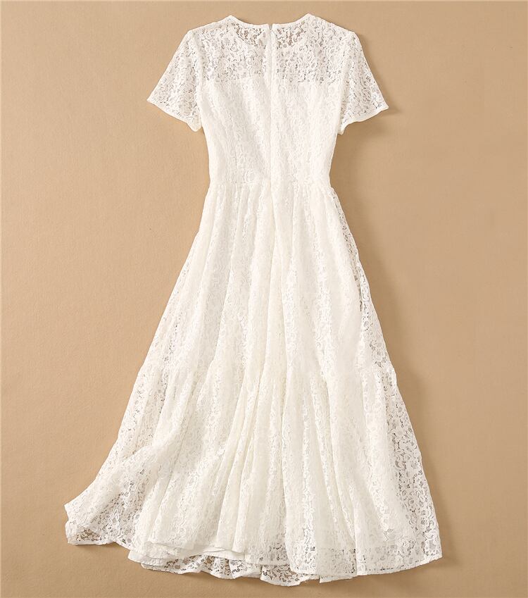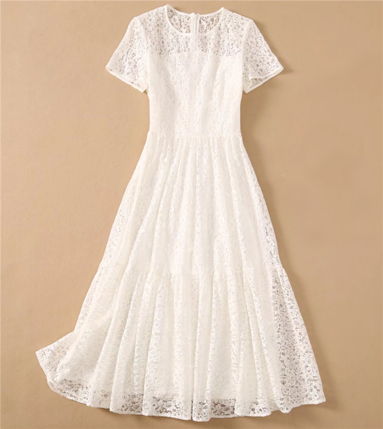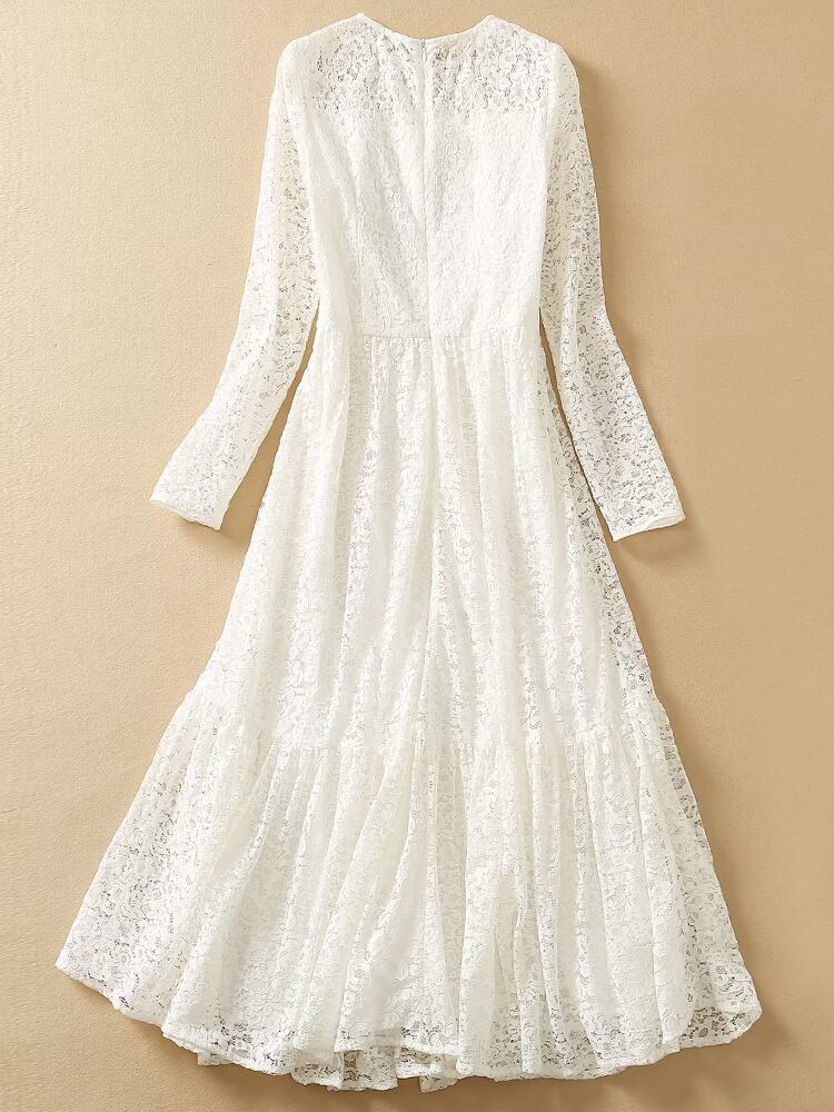 女性春白長袖レース ミディ ドレス オフィス パーティー ドレス ロング ホワイト スプリング 春物 会社 学校 通勤や通学にも pri8421944639