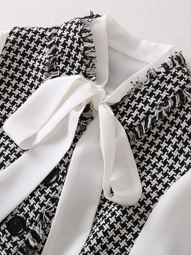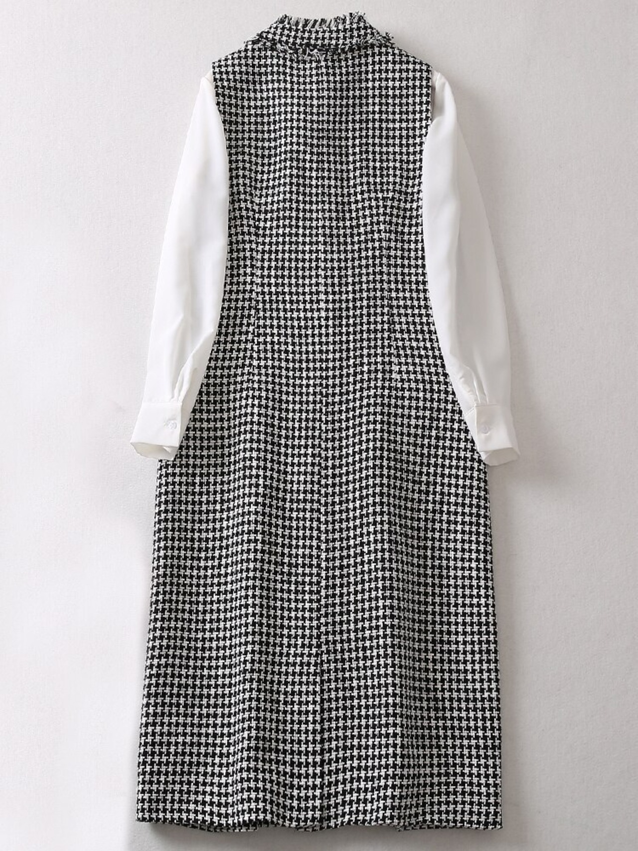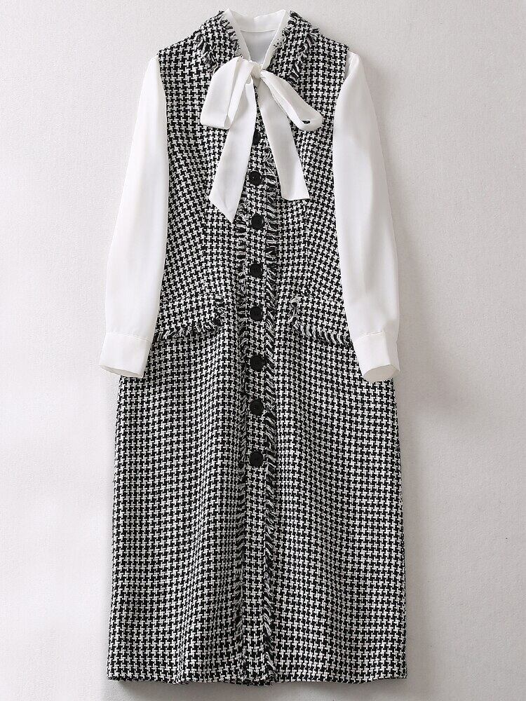 春秋の女性の白シャツ ツイード バック ドレス ツー ピース ドレス有名人パーティー ホワイト スプリング 春物 オータム 秋物 pri34902223614