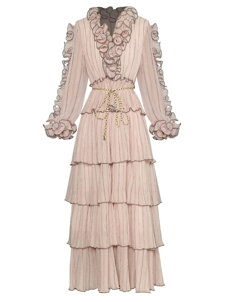 滑走路春秋の女性のプリーツ ティアード フリル ゴージャスな有名人のパーティー ロング ドレス レッド ラッフル スプリング 春物 オータム 秋物 pri7098800357