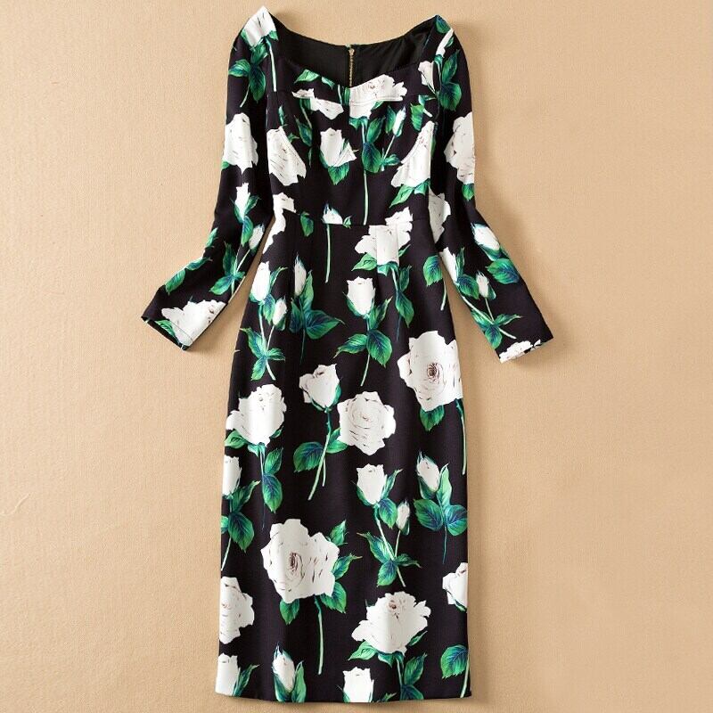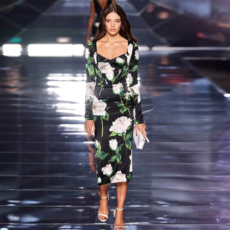 2022 春の女性のプリント ドレス滑走路パーティー長袖ミディ ドレス ロング スプリング 春物 pri57627464730