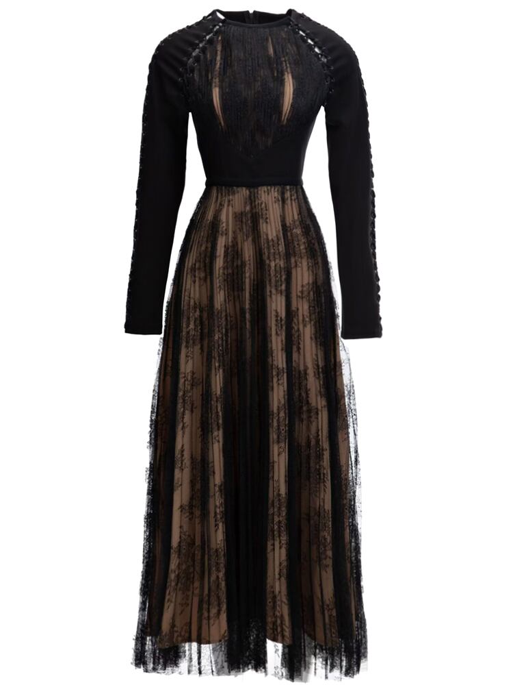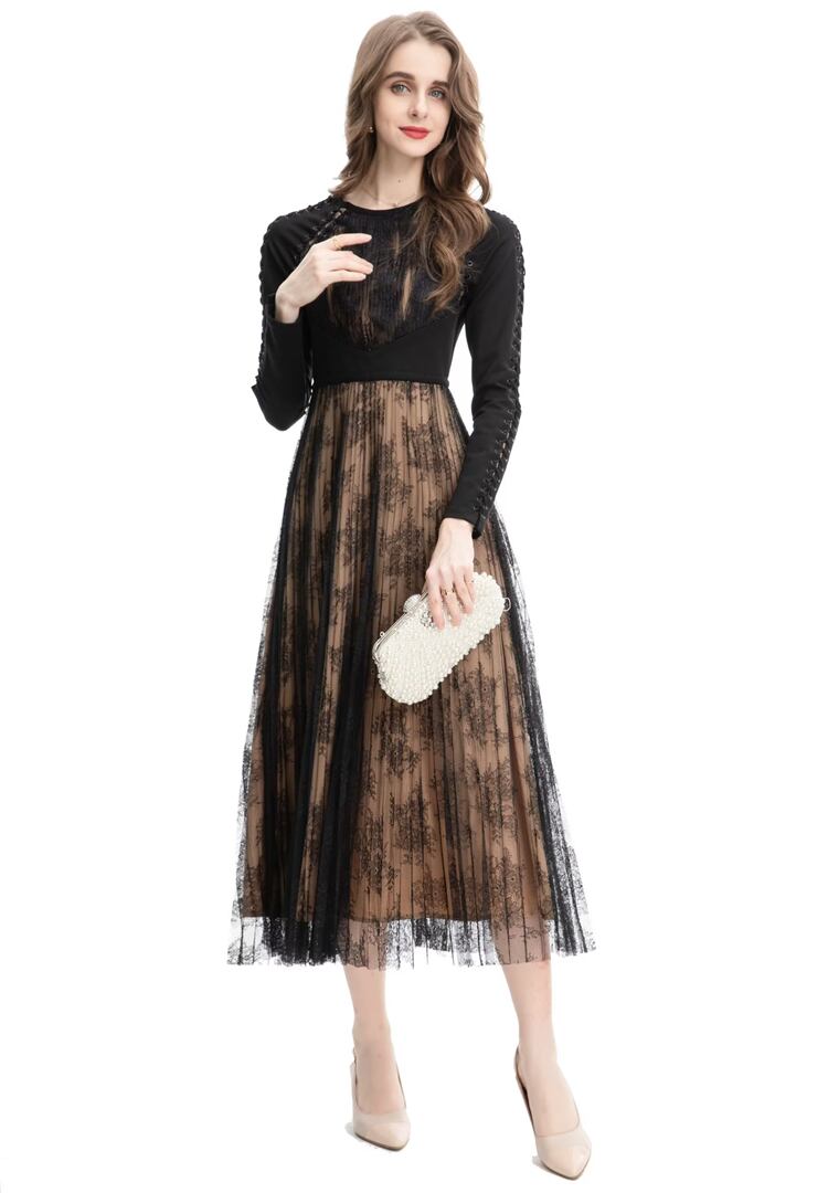 春秋の女性のレースのパッチワーク スリム ゴージャスな有名人のパーティー ロング ドレス スプリング 春物 オータム 秋物 pri47565141511