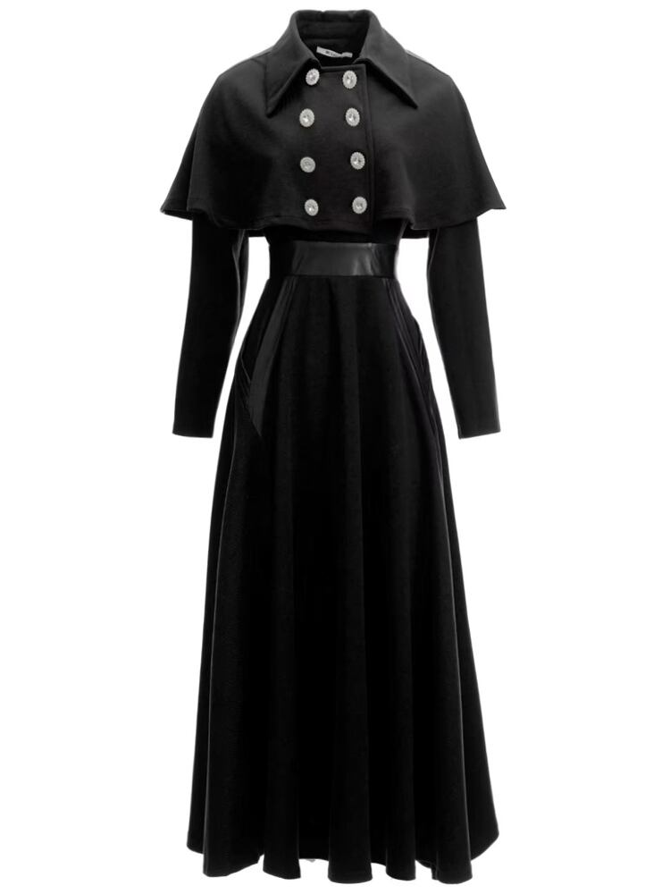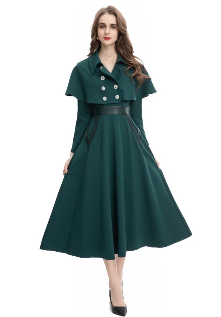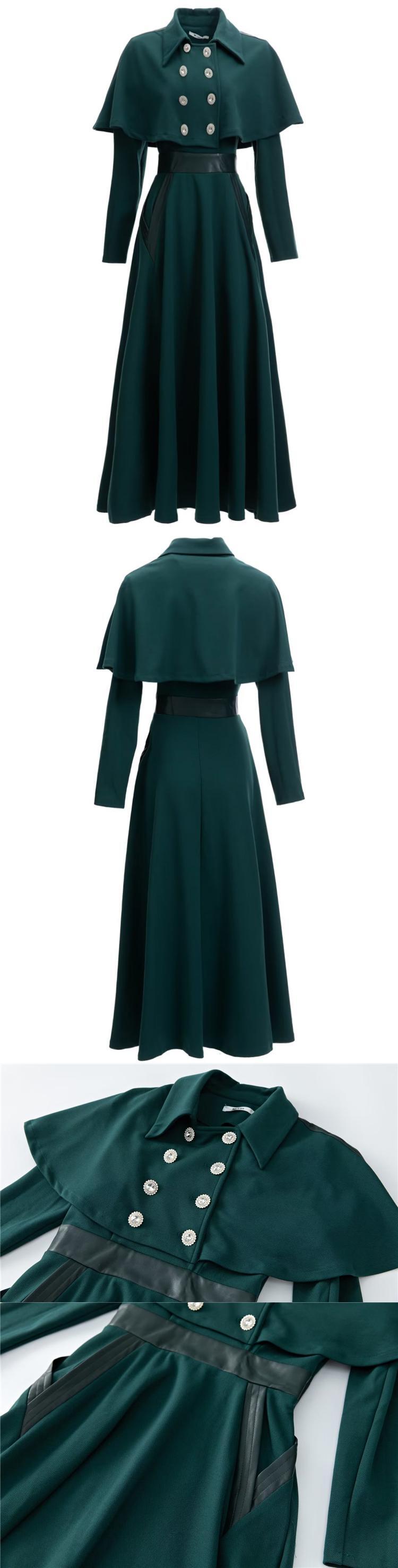 春秋の女性のボタン マント長袖有名人のパーティー ドレス ロング スプリング 春物 オータム 秋物 pri97114204654