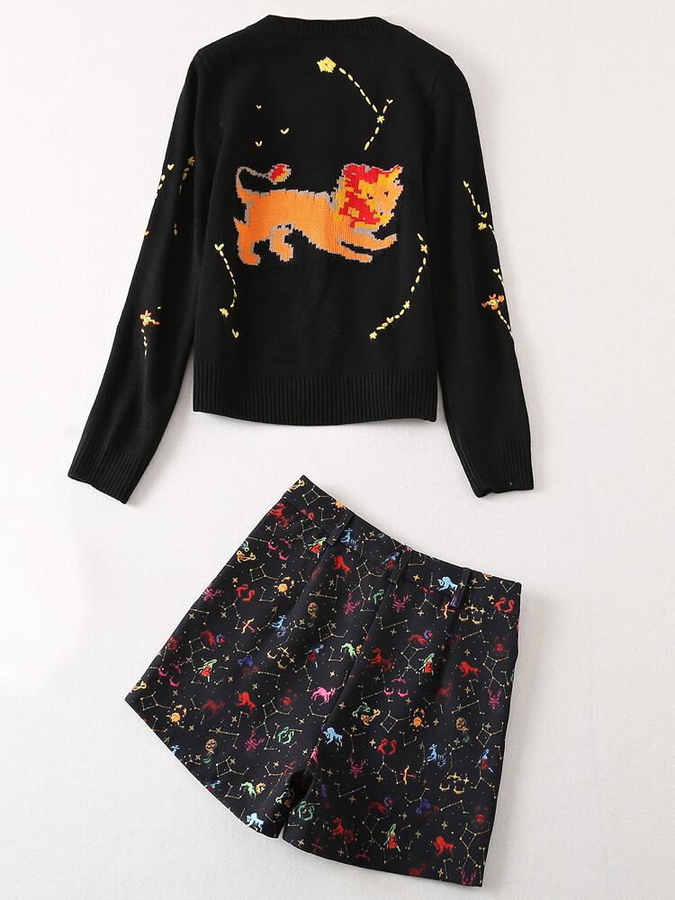 春秋の女性のスーツ黒刺繍セーター トップス ショーツ セット レッド ブラック スプリング 春物 オータム 秋物 ブルマー pri60972867648