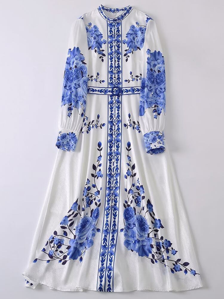 春秋の女性の長袖プリント ドレス有名人のパーティー ドレス ロング スプリング 春物 オータム 秋物 pri52598462443