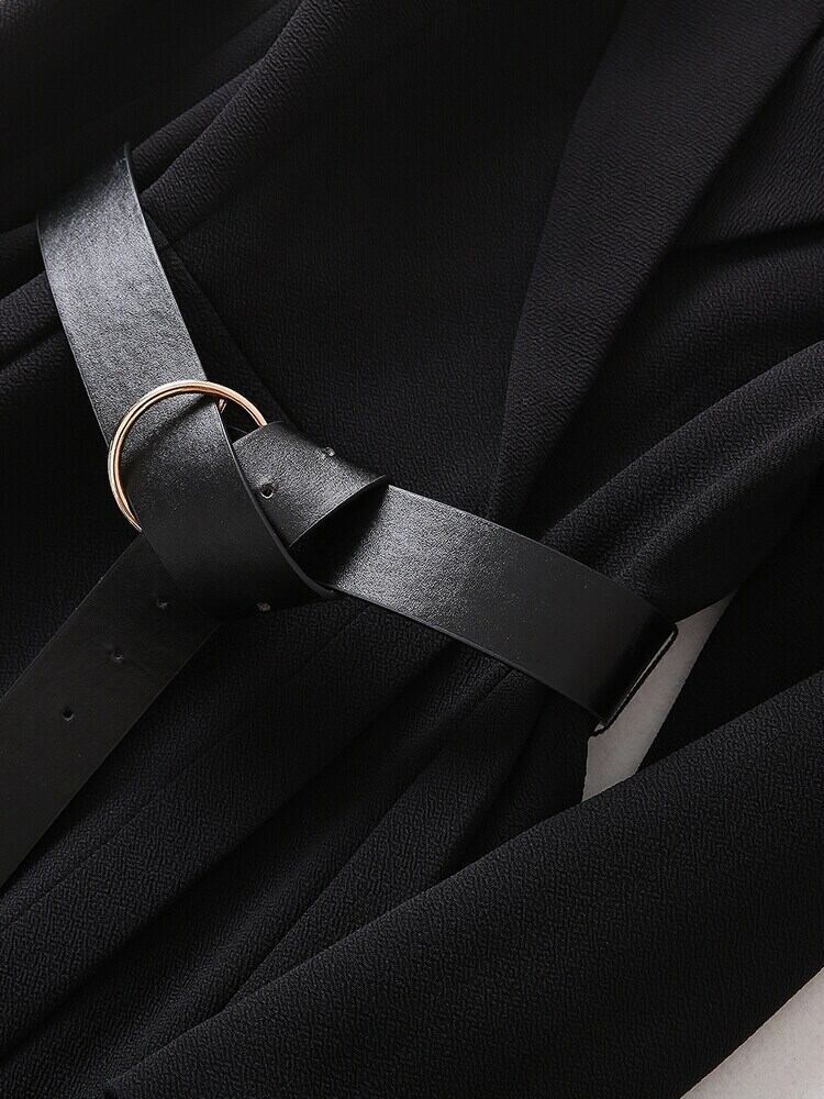 秋冬レディースブラックスリムベルトロングスリーブミディコートドレスパーティーシック 長袖 オータム 秋物 ウィンター 冬物 ハーネス pri85964353536