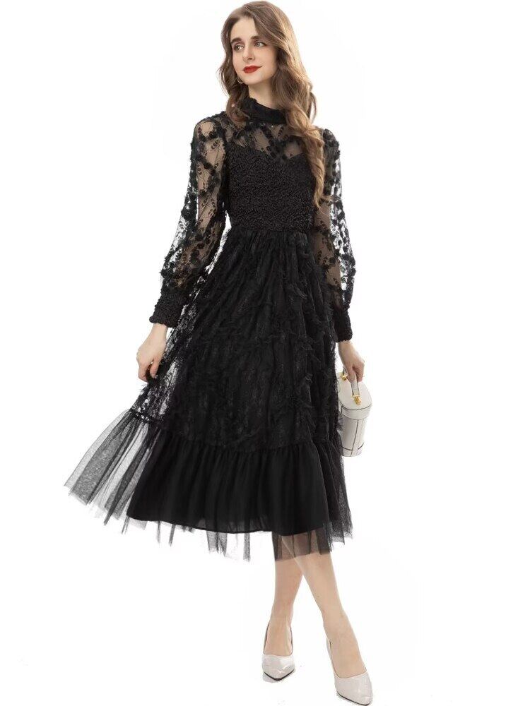 春秋の女性のプリーツ レース メッシュ スリム ゴージャスなパーティー ミディ ドレス スプリング 春物 オータム 秋物 pri80822955690