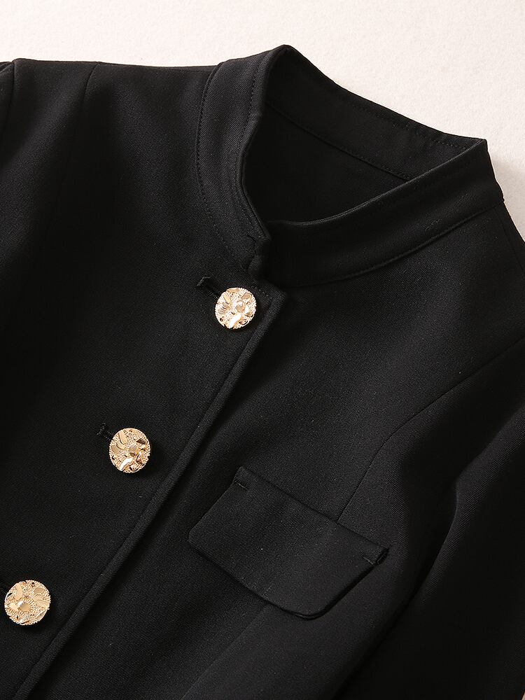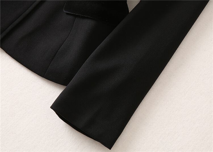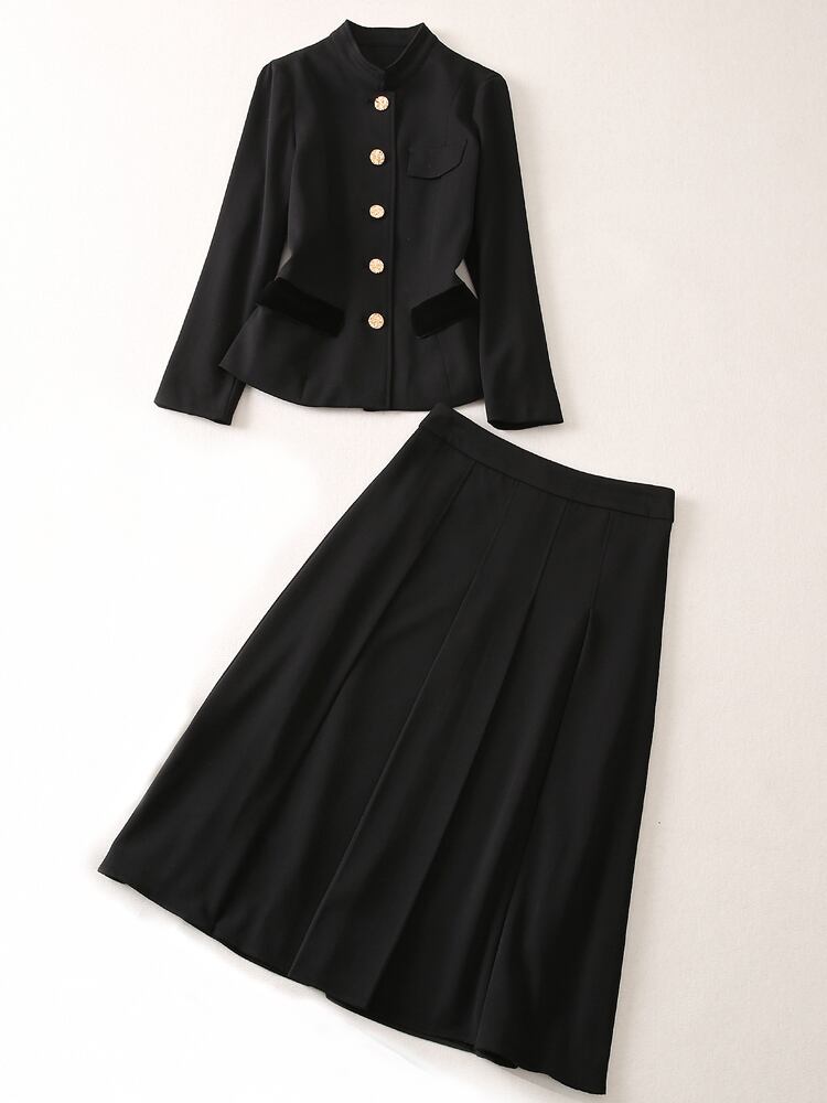 秋の女性のセット黒ボタン ジャケット トップス スカート シックな職場のスーツ ブラック レース オータム 秋物 pri47626900241