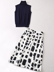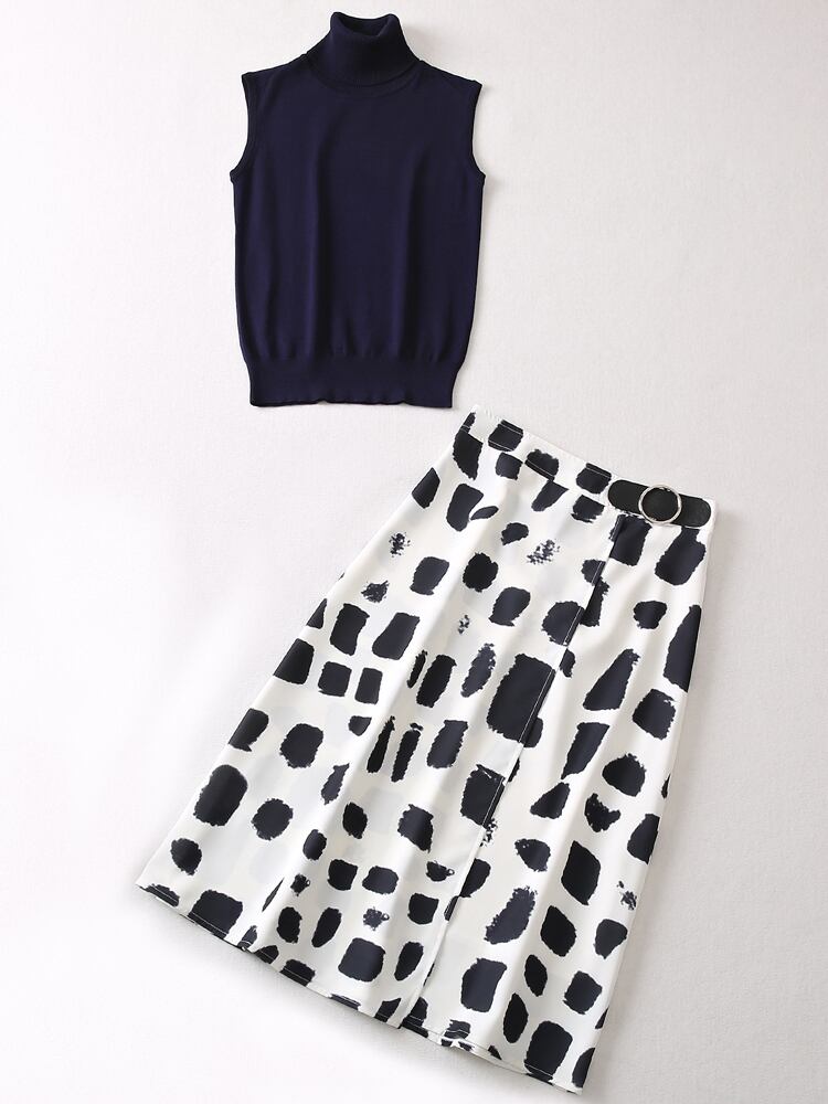 Kate Middleton レディース スーツ サマー レトロ ブラック ニット トップ + ヒョウ柄 スカート パーティー オフィス セット 夏物 会社 学校 通勤や通学にも pri12685724388