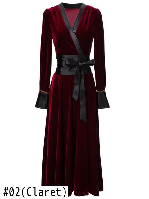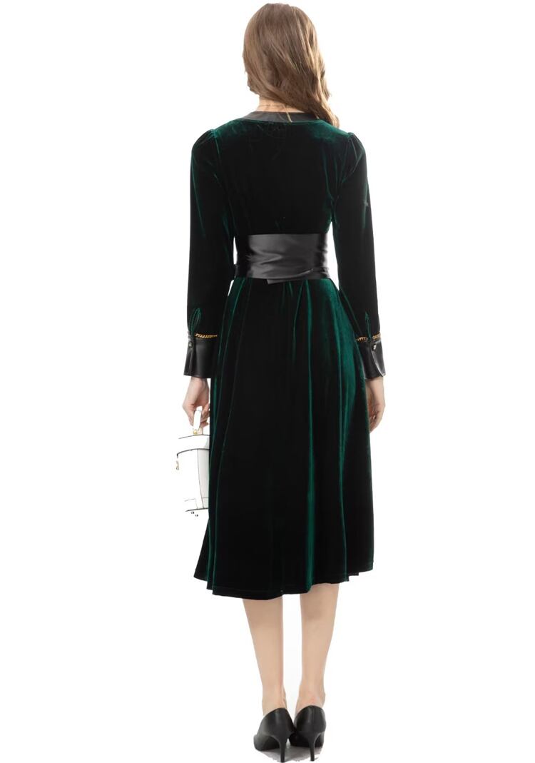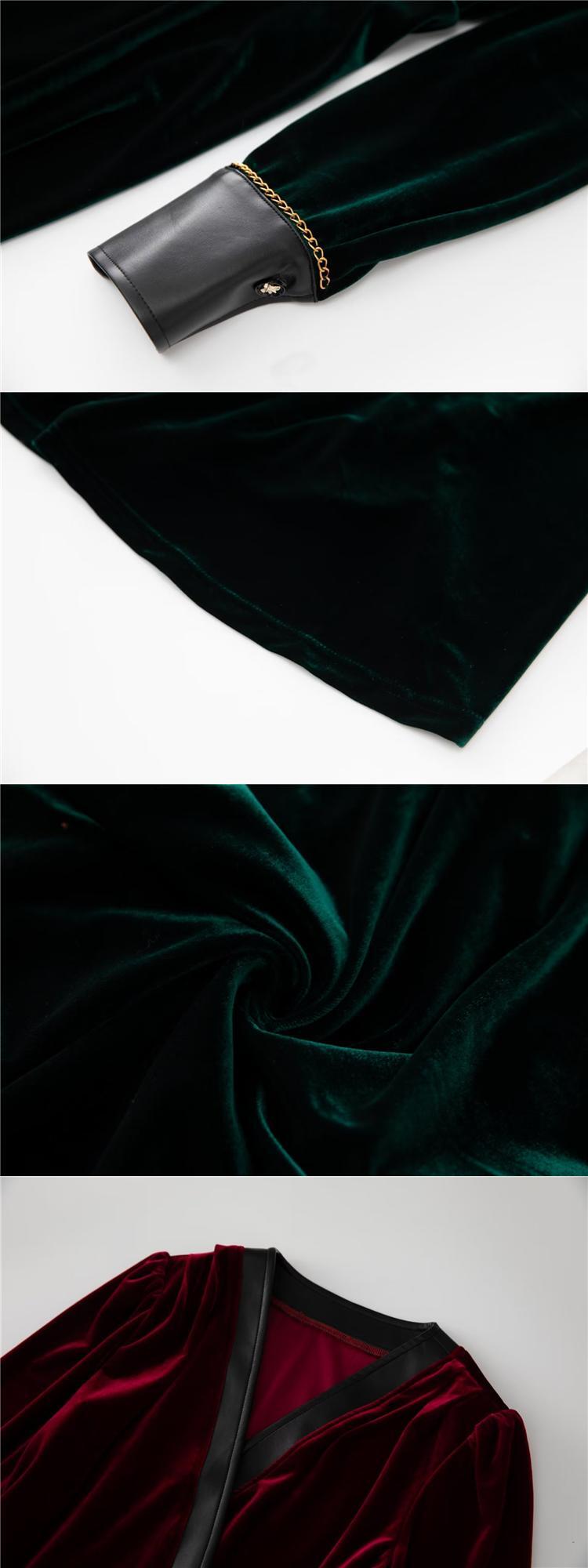 春秋の女性の Pu レザー パッチワーク ベルト スリム ベルベット ミディ ドレス パーティー スプリング 春物 オータム 秋物 ハーネス pri30758645963