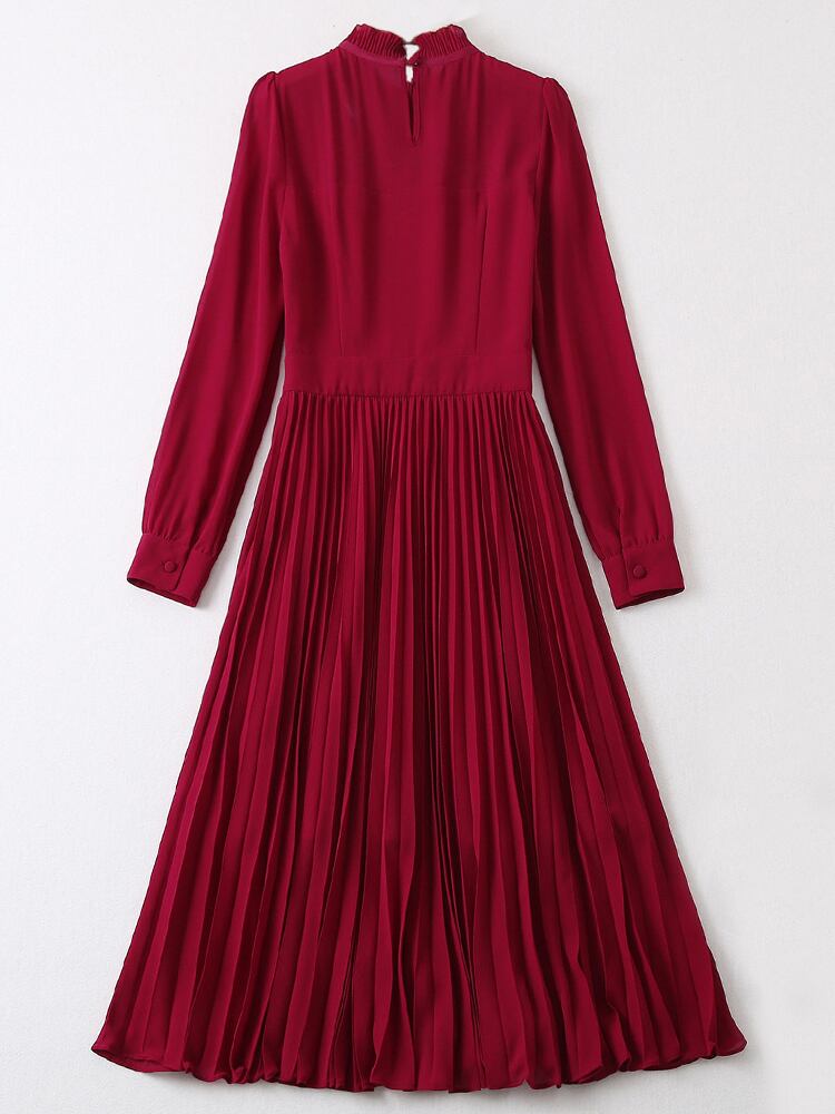 春秋の女性長袖スリム プリーツ ミディ ドレス有名人パーティー休日 ロング スプリング 春物 オータム 秋物 pri70344715778