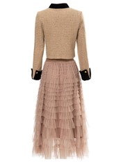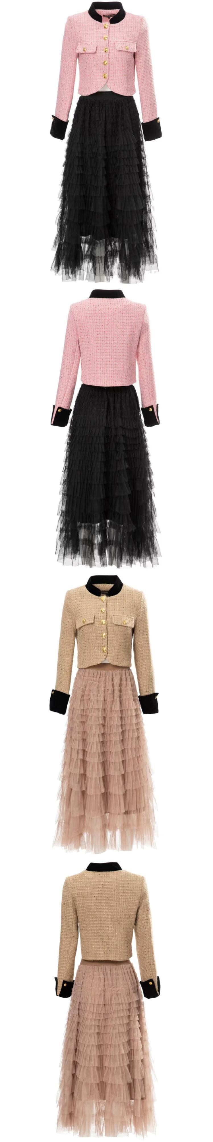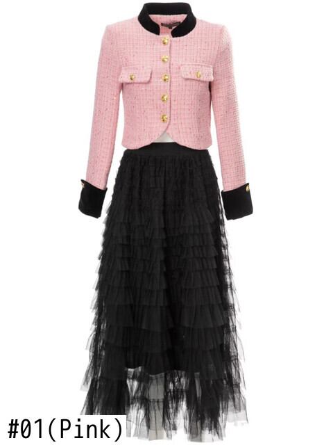 春秋の女性の 2 点セット ツイード コート トップス メッシュ スカート シックなパーティー スーツ スプリング 春物 オータム 秋物 pri80180311607